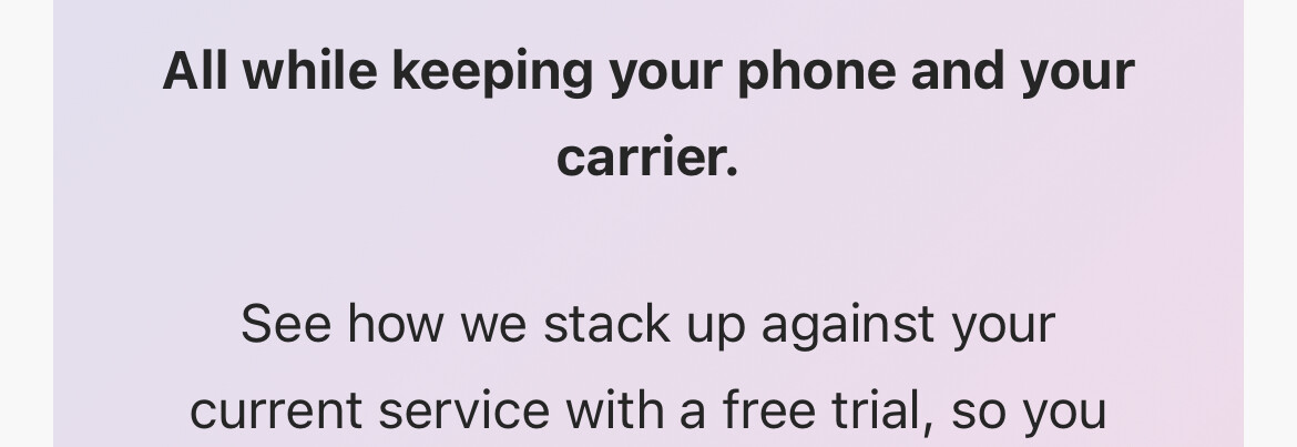 No auto-renewal, no effect on your current service. Switch to Mint for as little as $15/mo when you’re ready to keep the savings going.