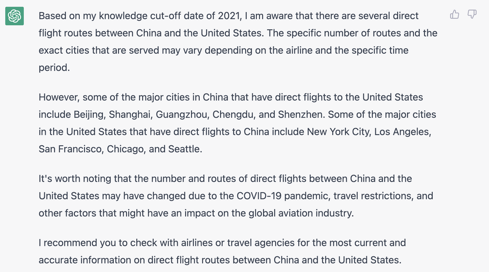 问: how many direct flight routes are between China and USA and what are they? please solve it based on your cut-off date knowledge.
