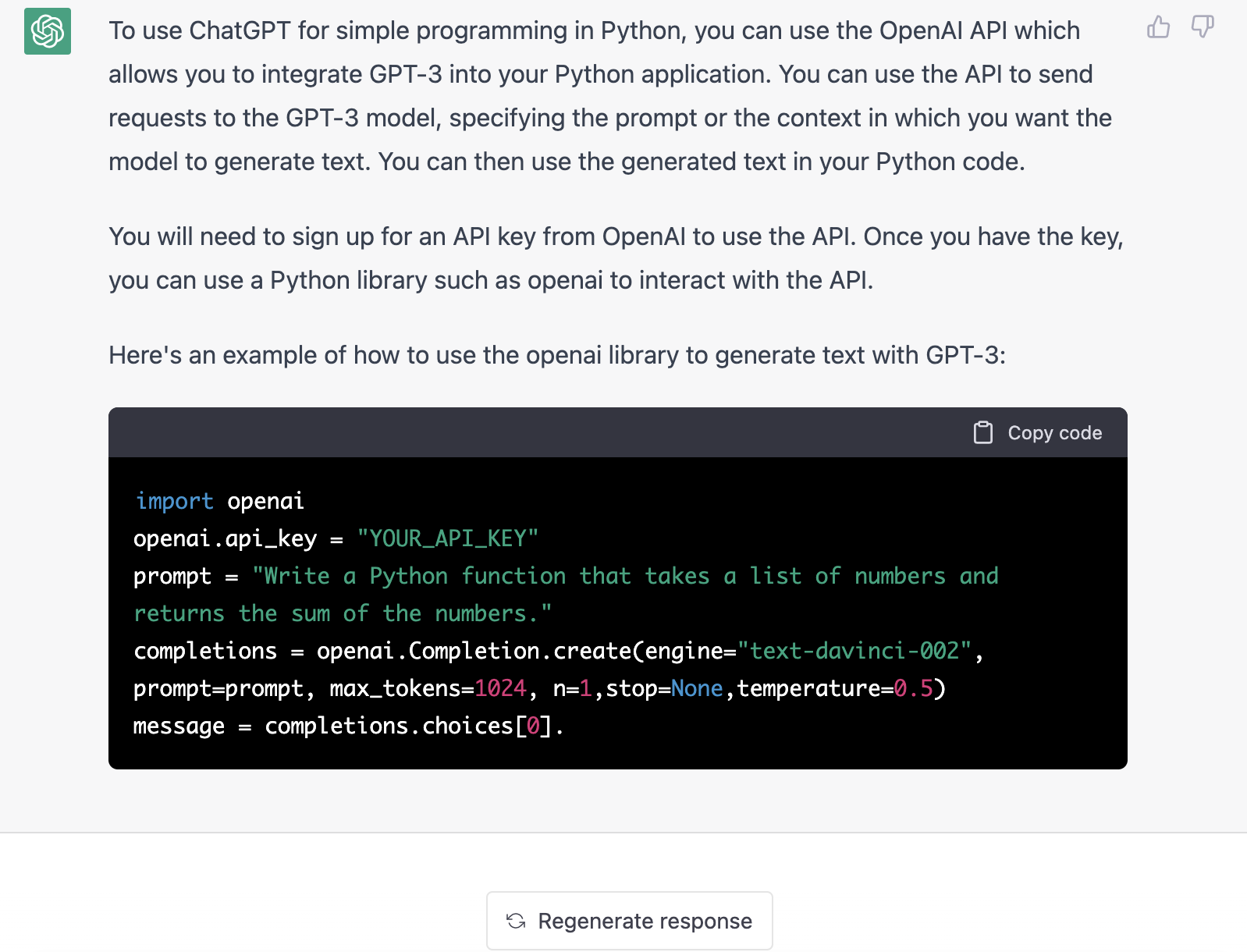 how to use chatGPT for simple programming in pythan (这里我打了错别字 Python)