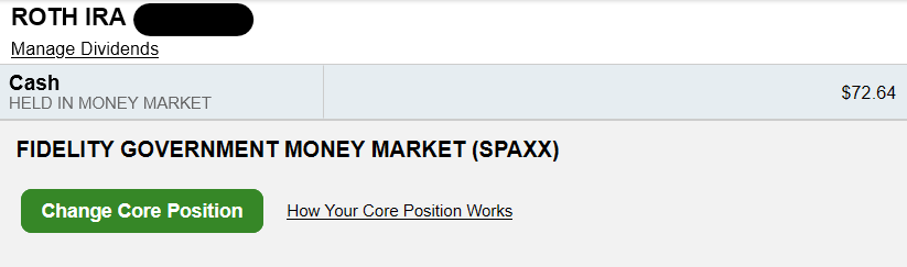 最近刚开Fidelity Roth IRA,请问大家只有roth ira也会有core position余额自动买SPAXX之类的吗?还是需要我手动去买?