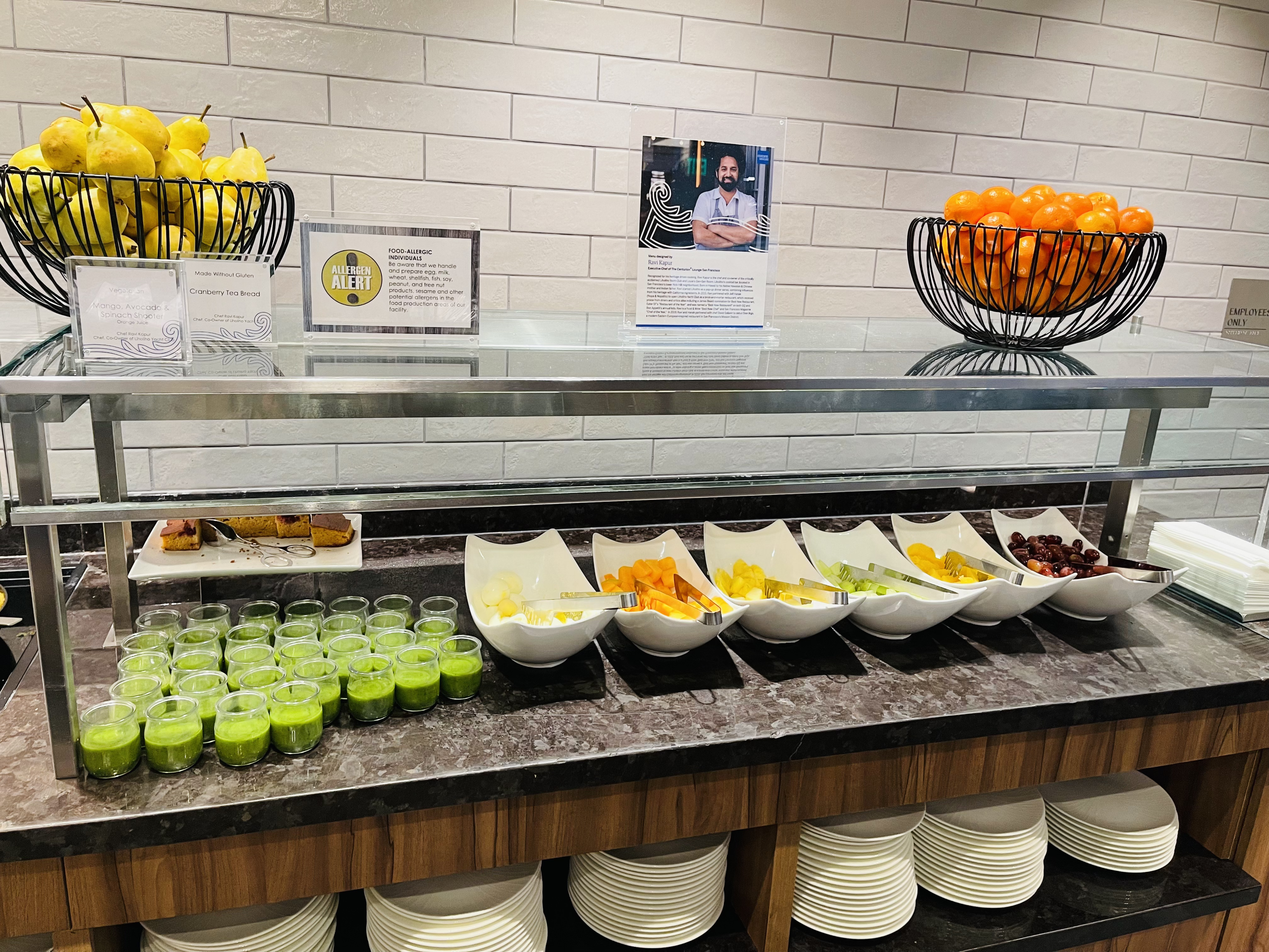 上周和好朋友去南加玩,终于赶上了SFO重新开业的Amex Lounge. (去年11月份感恩节期间只能在门口领饭,圣诞节期间干脆就没开)