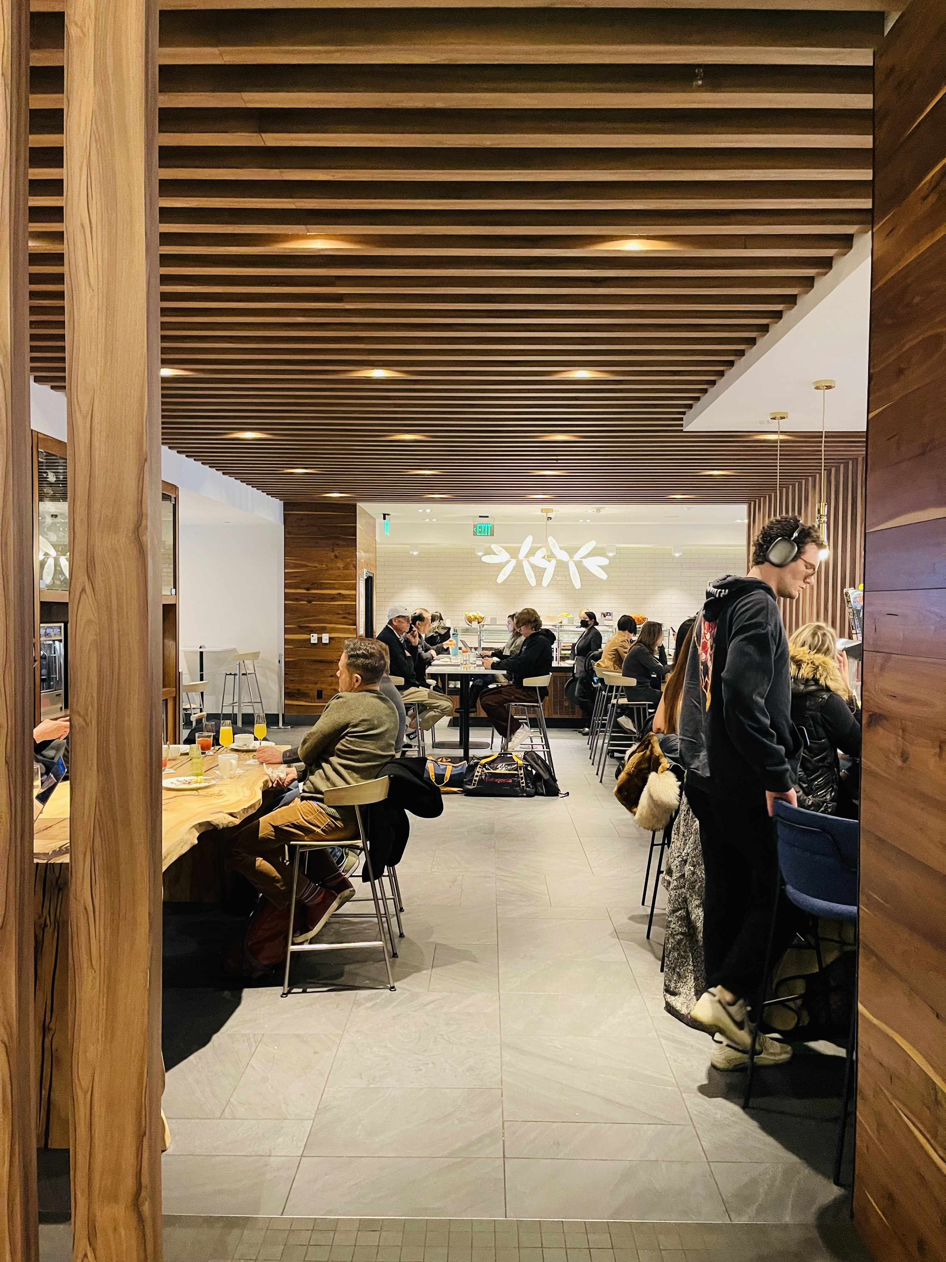 早餐附近的座位已经坐满了,要穿过一条长长的走廊才能到另一个座位区