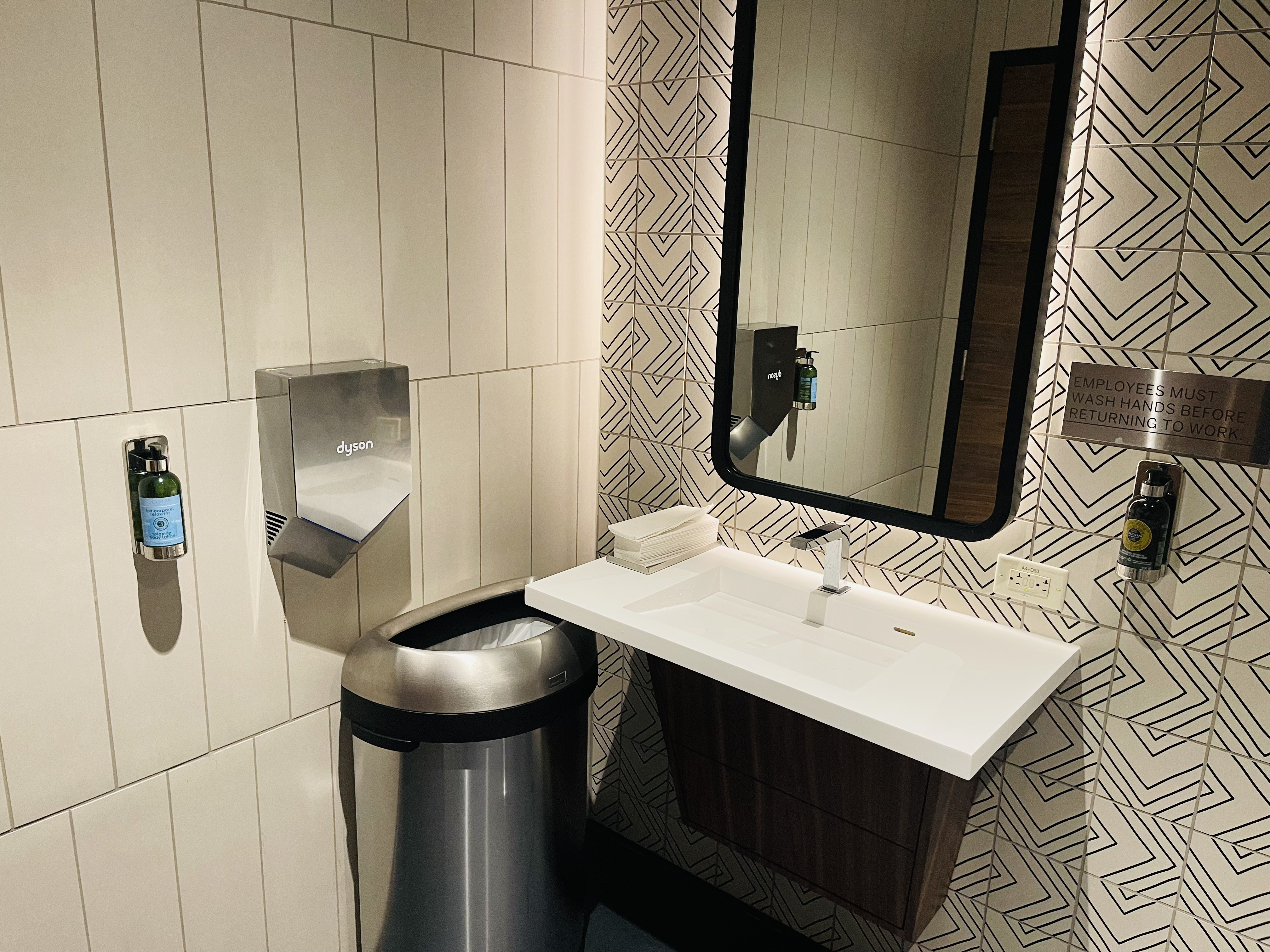 洗手间是欧舒丹的备品;洗手间旁边有两个洗澡间,但是被锁了(可能需要找工作人员?)