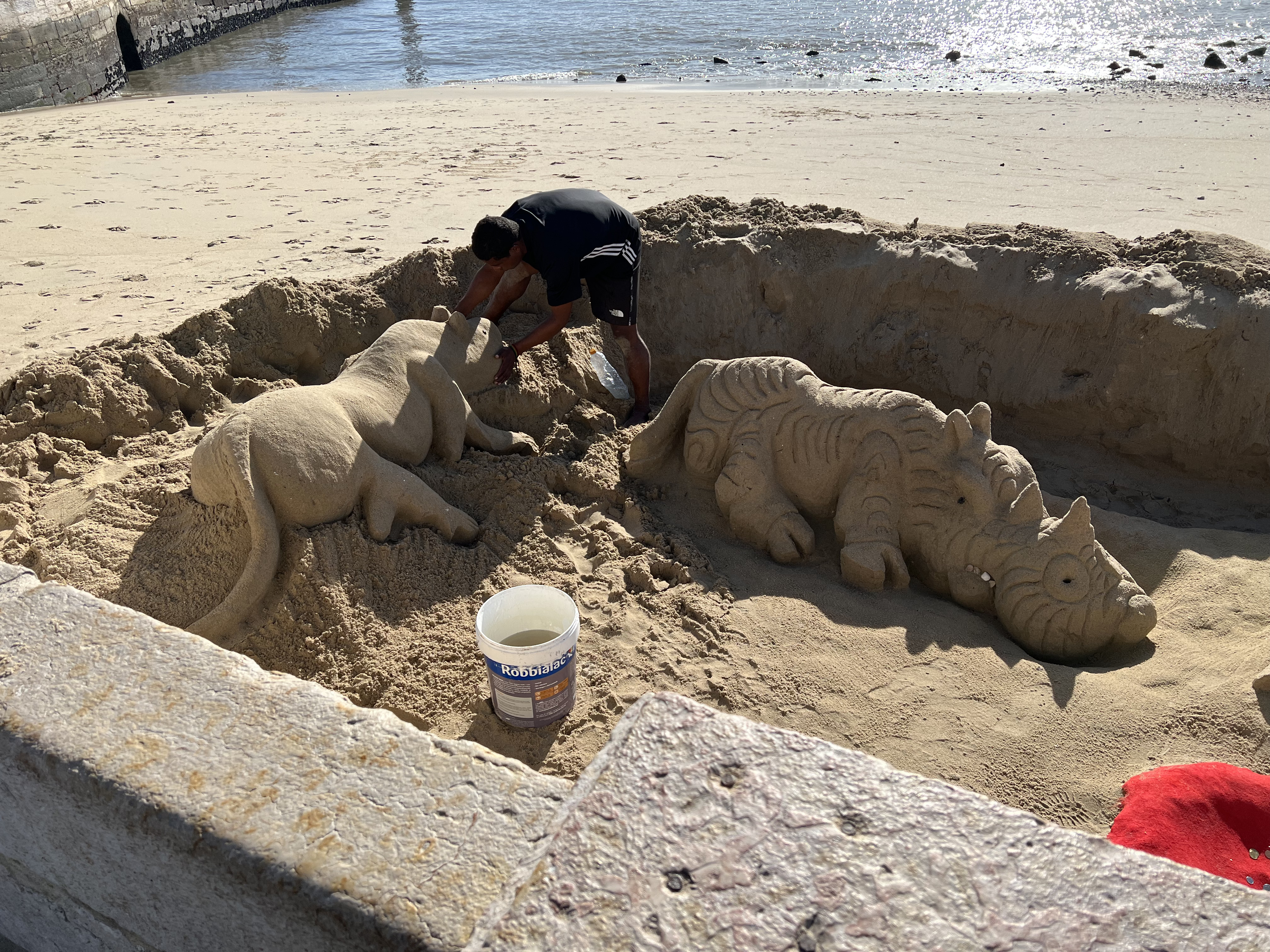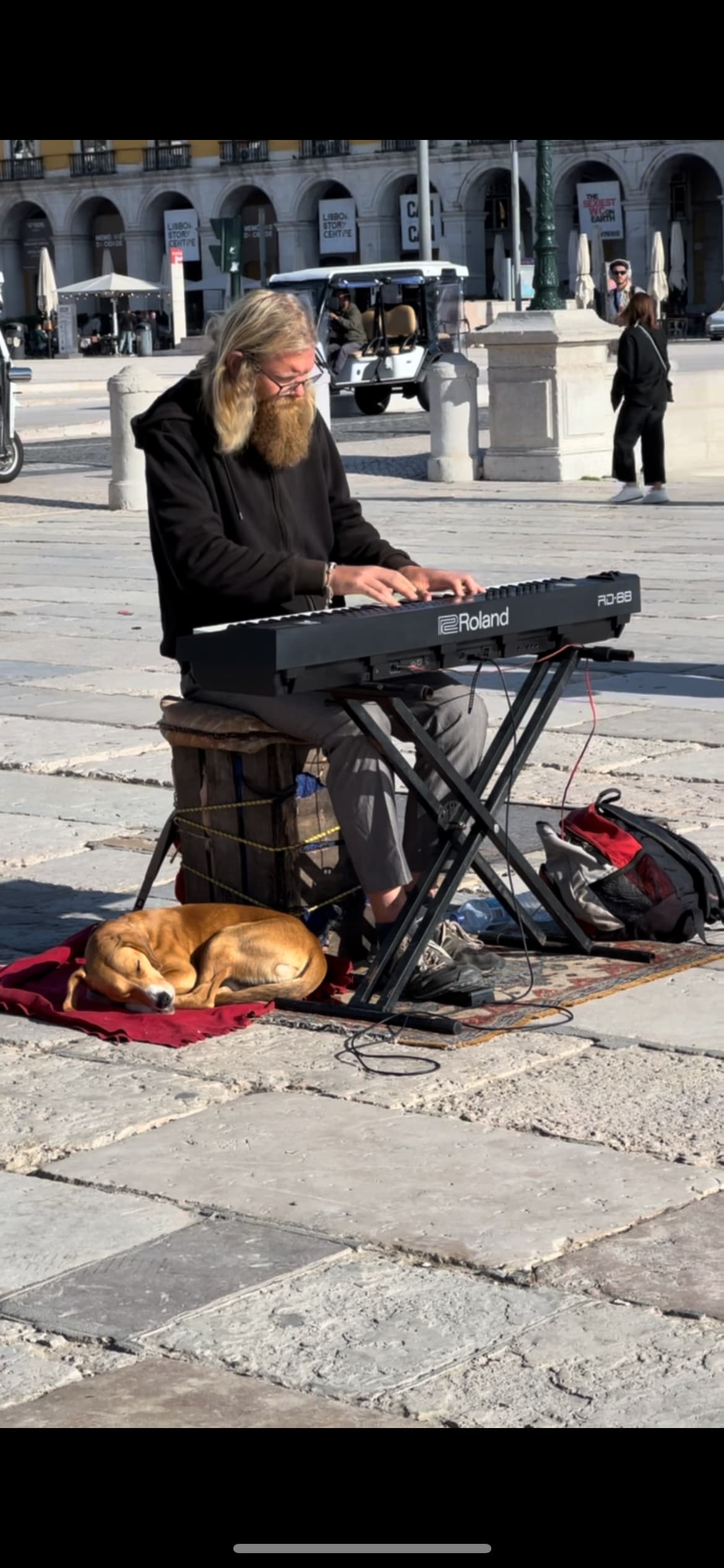 在后来的某一天在海边闲逛发现了一个艺术家在做沙雕,是真的沙雕,还偷偷拍了一个在海边安安静静玩手机的姐姐,以及一位街头艺人在弹钢琴,旁边依偎着他的小狗狗,小狗狗就在这钢琴声中晒着太阳呼呼呼呼,我上前给艺人大叔投币一键三连,顺便近距离看了看他的狗狗【没办法上传视频我就传个视频截图好了】