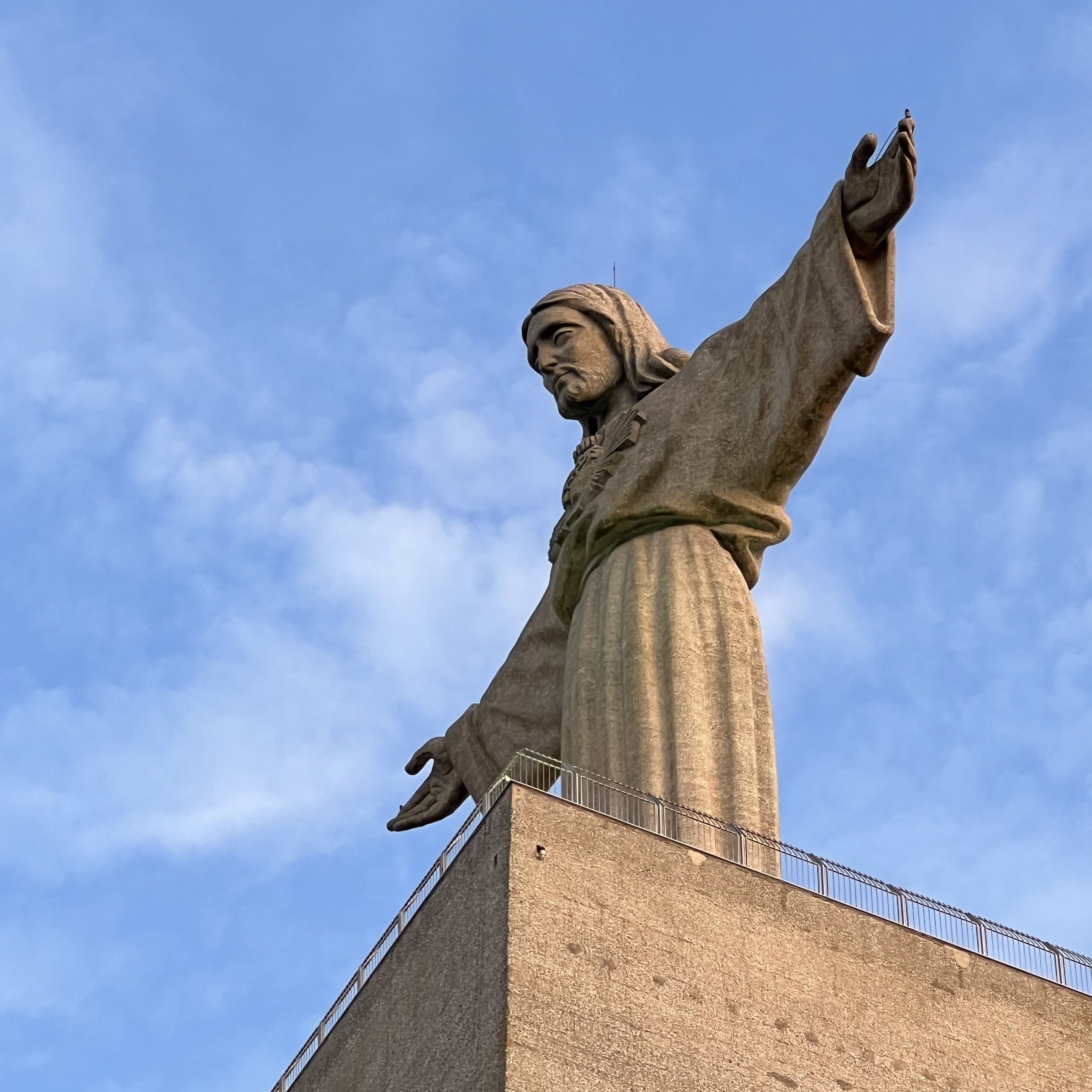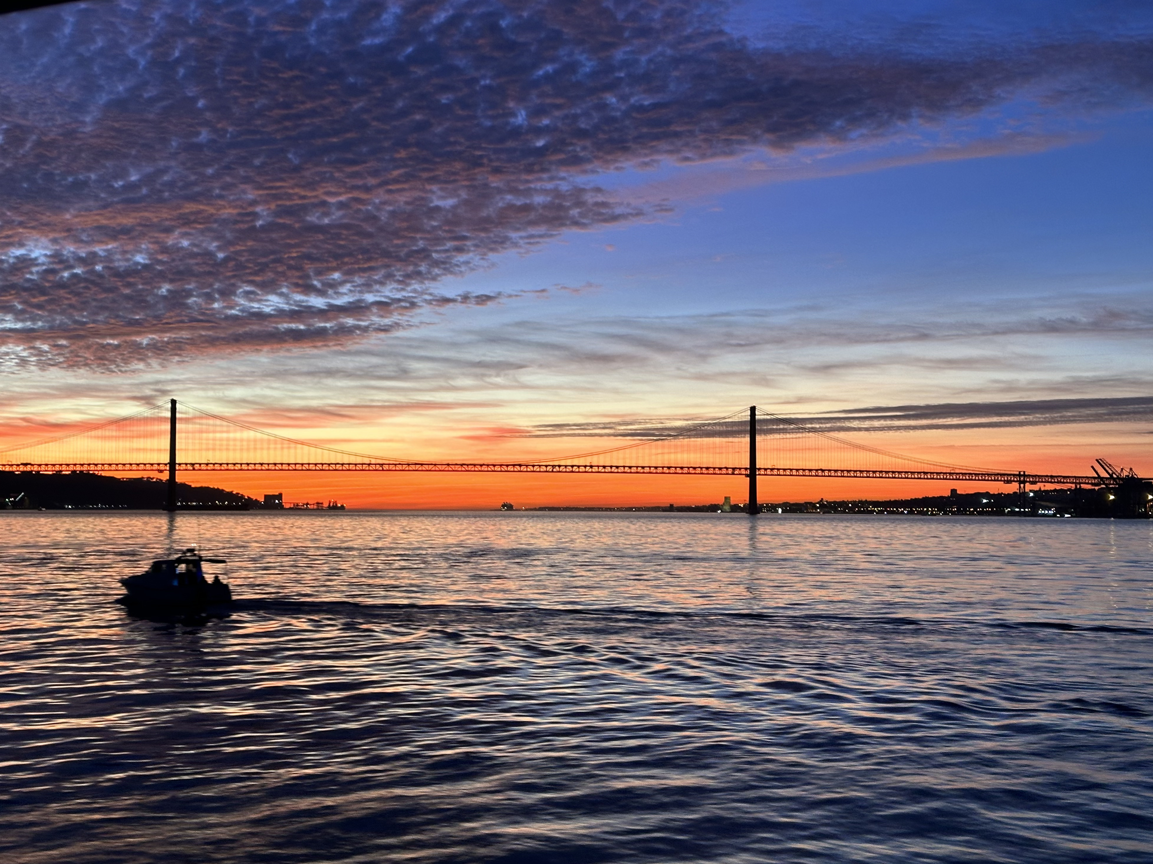 然后啊不知道在哪天打车穿过“金门大桥”来到了耶稣像下,最后坐ferry回到里斯本码头,在ferry上看到了我这辈子都很难再忘记的晚霞