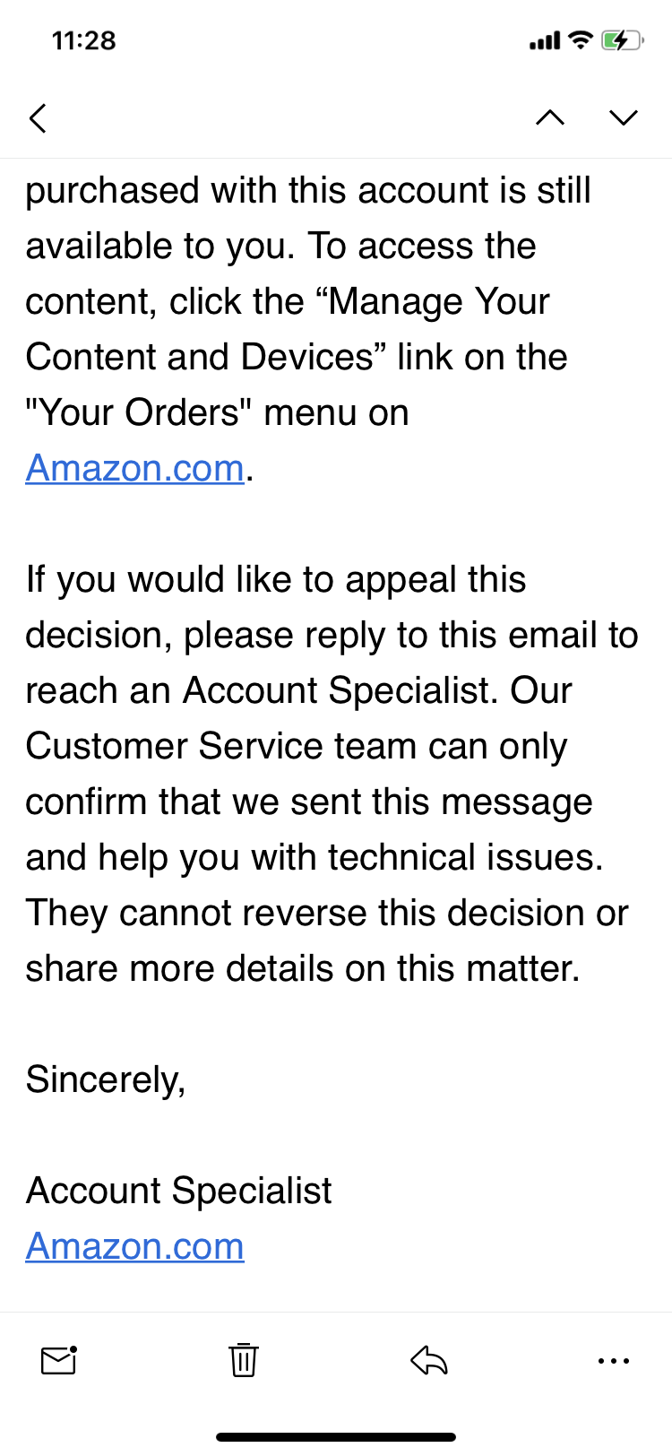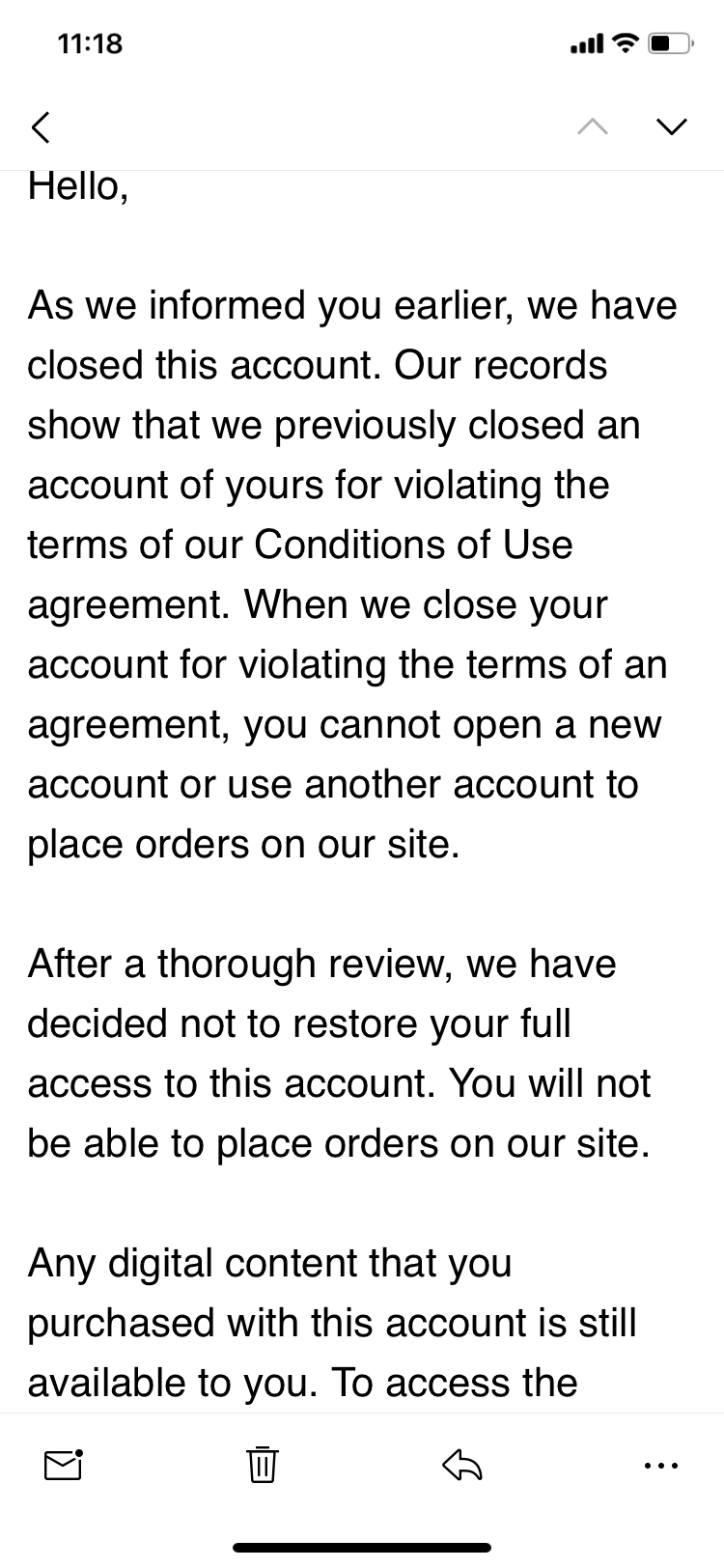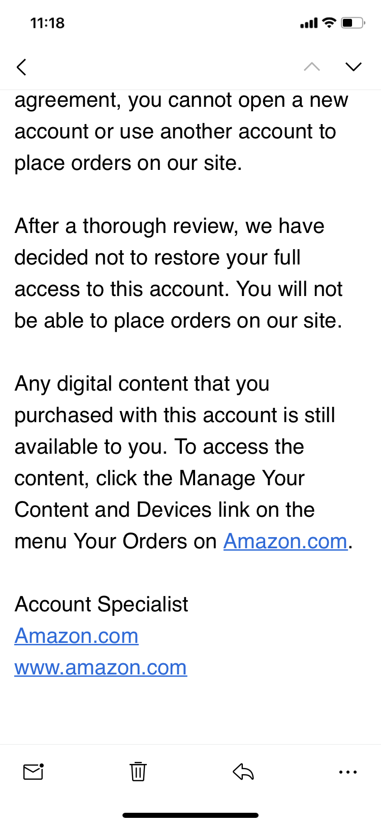 大佬们 亚麻账户被关之后 有没有复活的机会?之所以认为是误杀,因为我之前没有账号被关呀。他怎么就把我的账号关联到一起了?