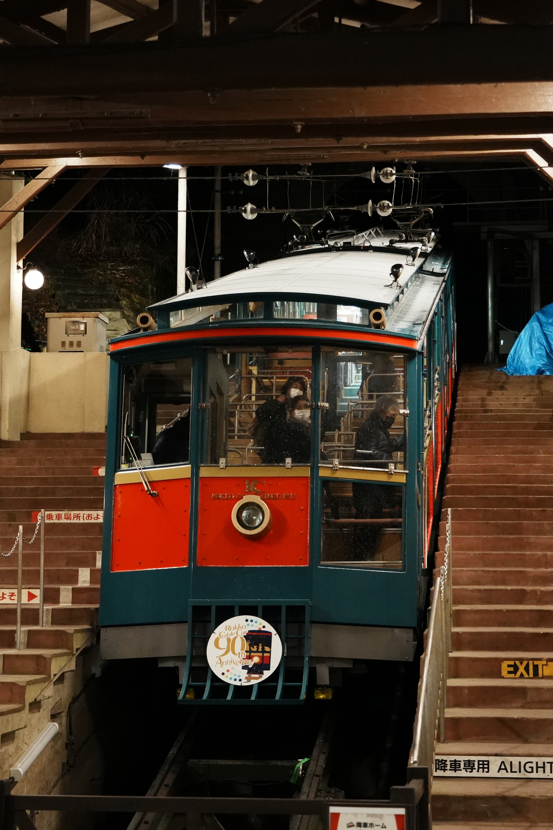 六甲山的登山车,斜着铁轨的那种