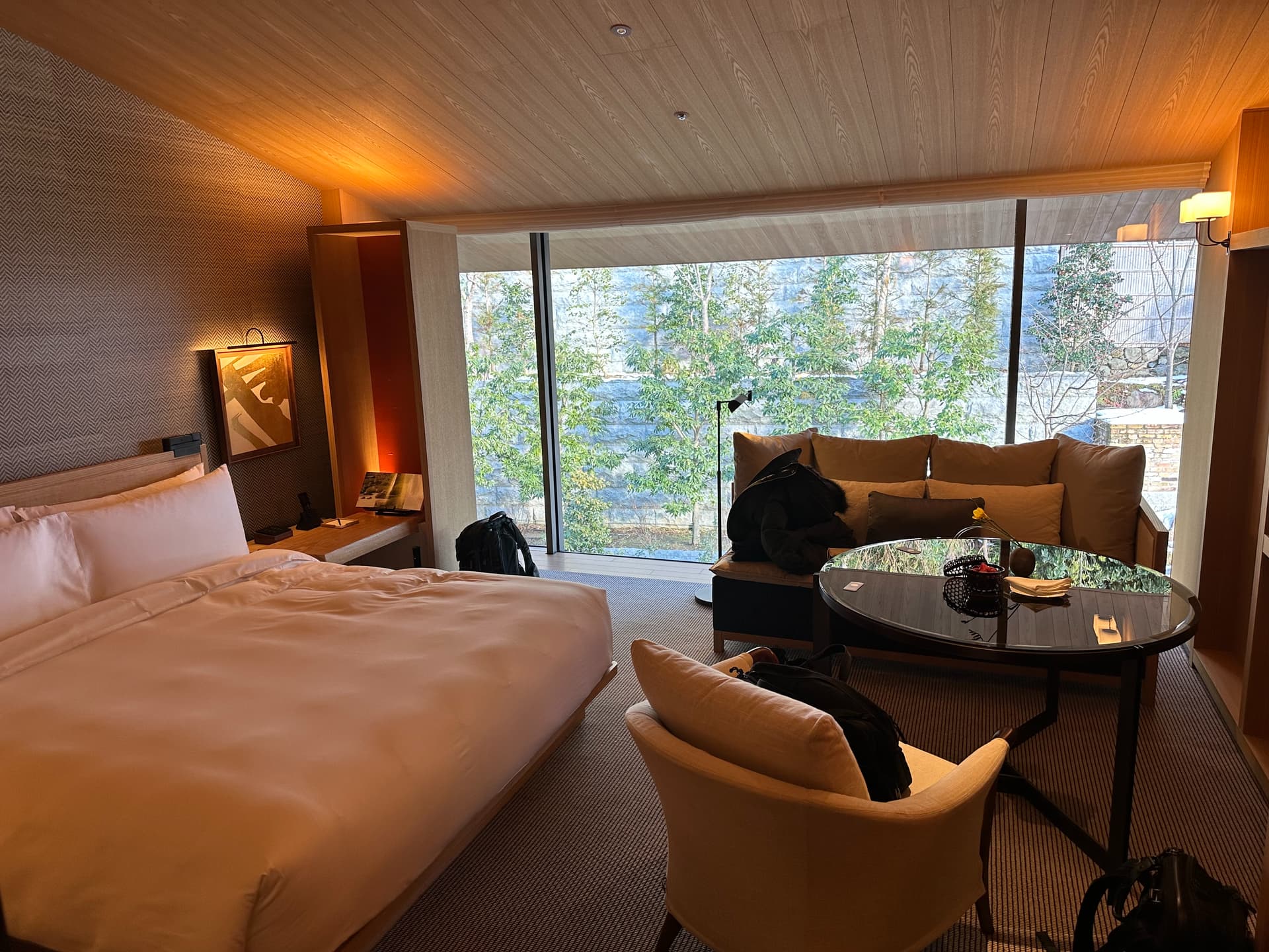 吃完差不多也要3点了,直奔晚上的酒店check in。用的3w5的分换的park hyatt kyoto,水球客,升到了garden view的高层。(他们这花园真感觉一般…)我提前发邮件问过能不能升city view(能看八坂塔的那个),被告知要付钱升级。备品是santal 33(没拍但是拿了不少)。