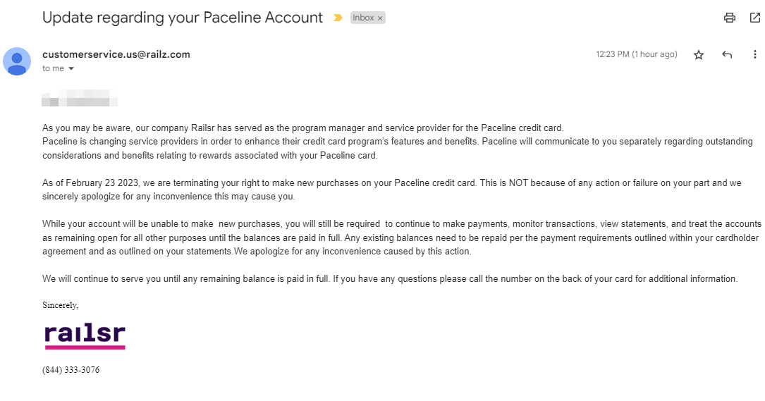 If you were charged an AMF within 90 days of the termination date (February 23 2023), you will be refunded the $60 AMF as a statement credit to your Paceline account prior to the final termination date.