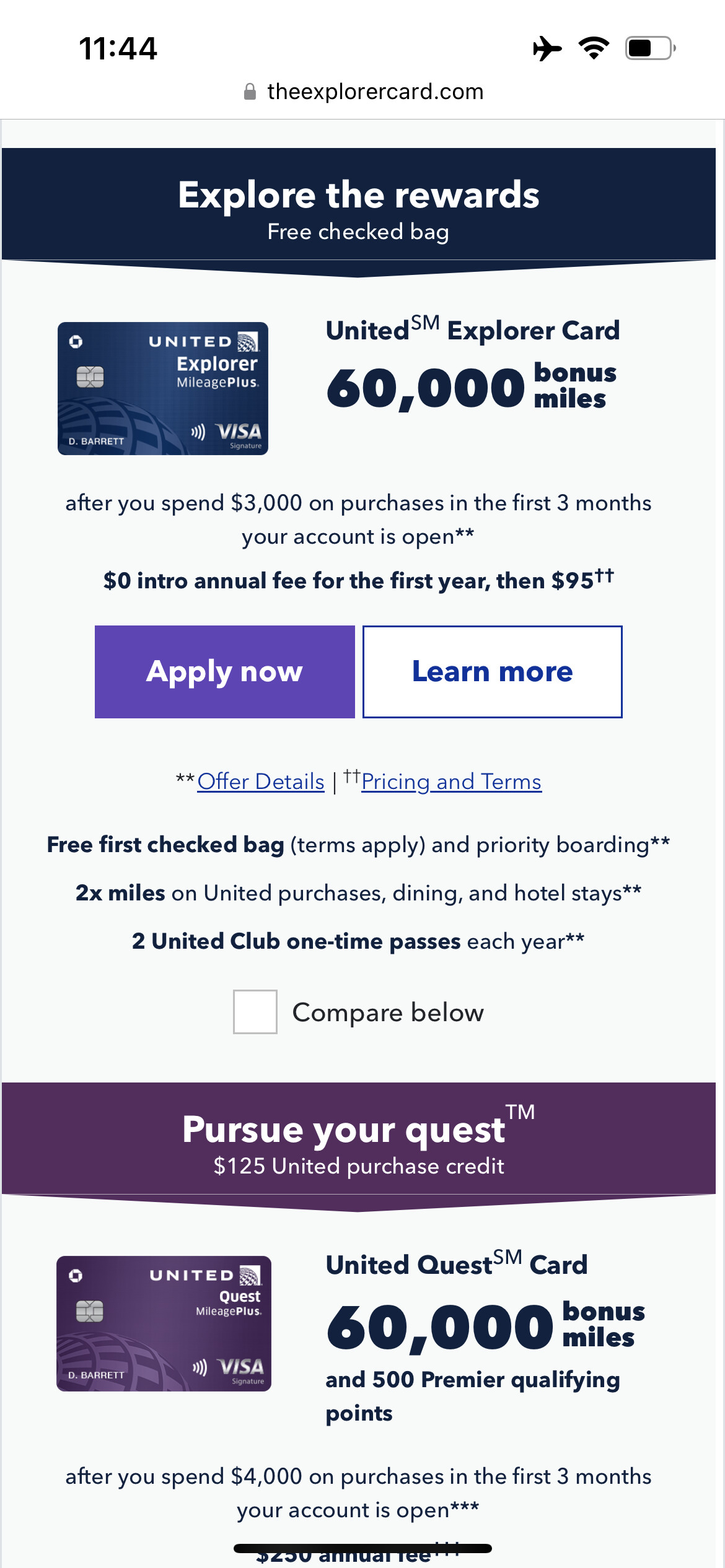 chase UA explorer inflight offer 72.5K