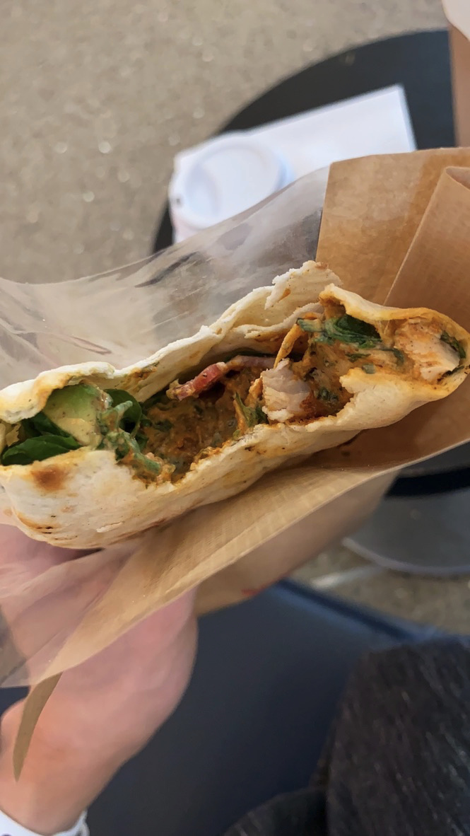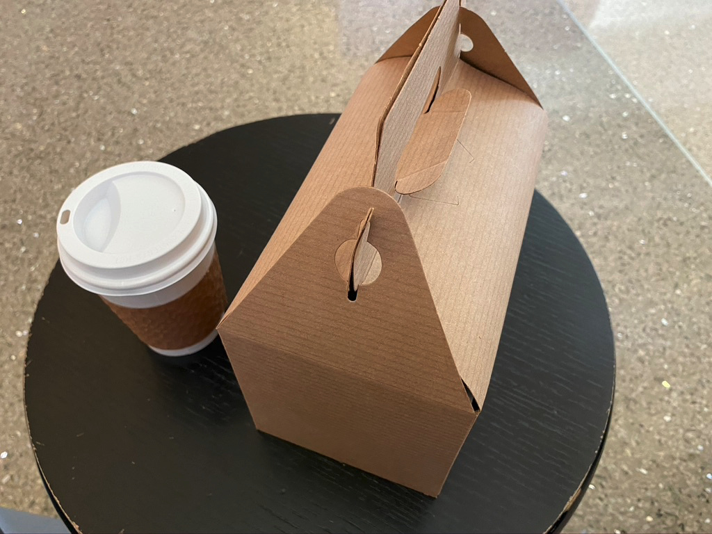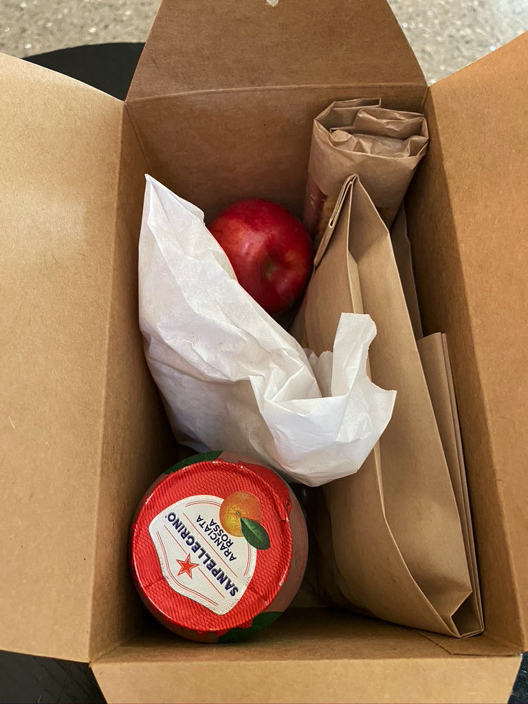 在LAX中转,这里的UA Club虽然开着但不让进,说是只有国际航班的乘客能进,或者要么你是UA的会员。行吧,好拽哦!那我去Amex的Centurion Lounge。结果Centurion Lounge只提供外带服务!送你一杯咖啡+暖心lunch box(里面的chicken sandwich倒是挺好吃的),然后我们只能坐在机场的某个角落默默啃sandwich。