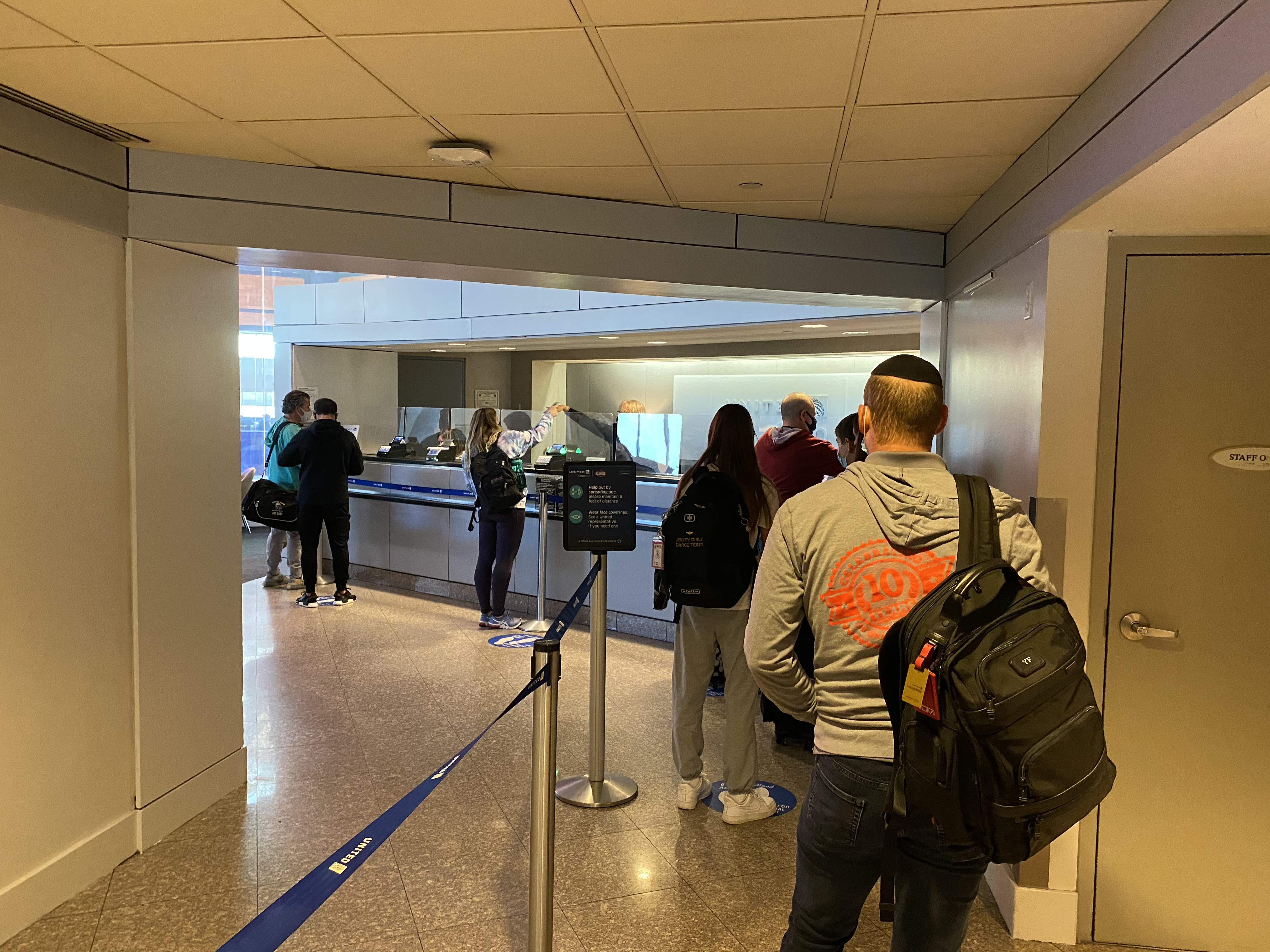 一大早到EWR之后,安检处真的是完全没有social distancing,所有人都挤在一起。而且那些安检用的tray看起来非常脏,完全不像有在清理的样子。个人感觉这可能是整个飞行过程中最危险的时候。