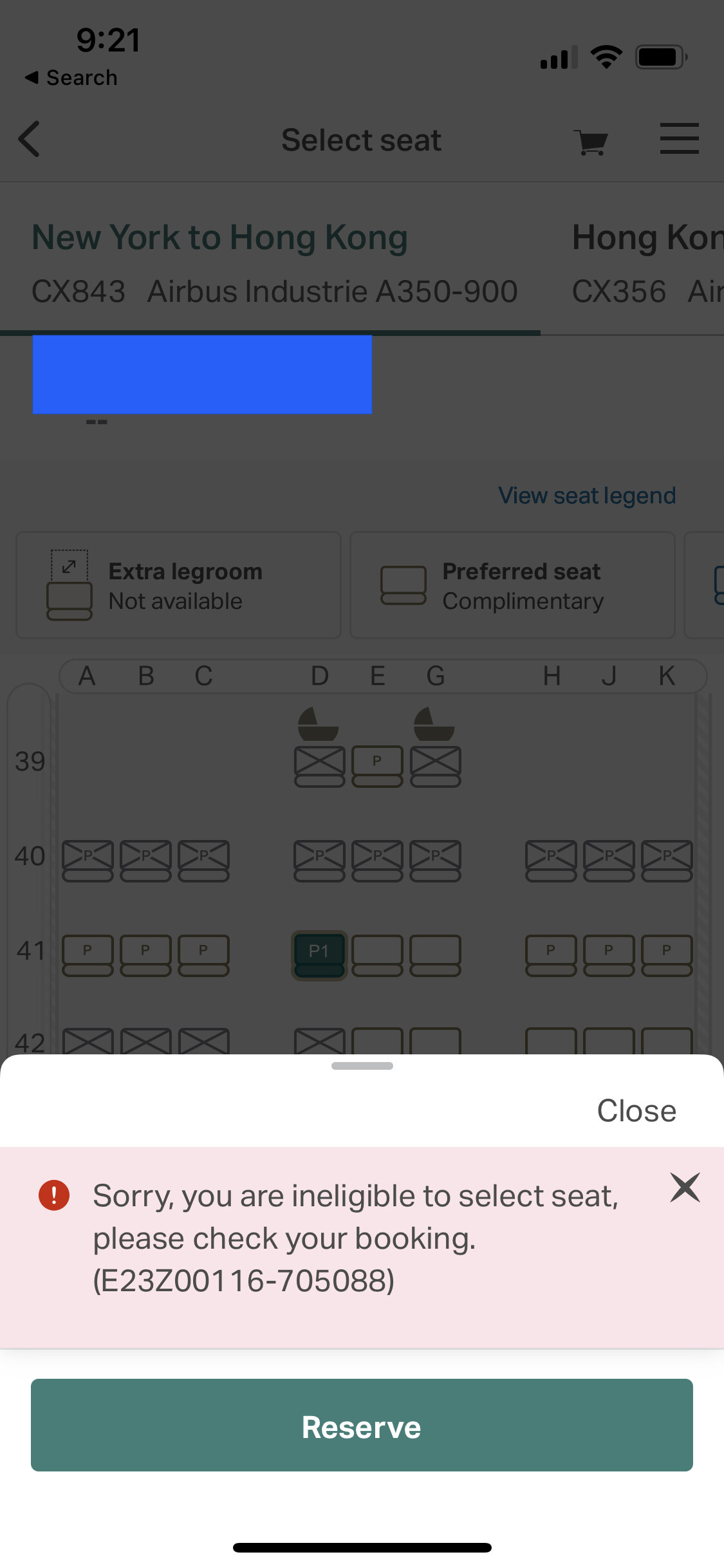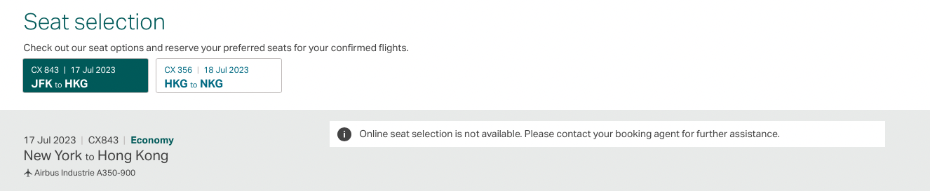 如题,aa里程换了一张cx843暑假美东回国机票,经济舱,不知道为什么不能选座位。。在app里能看到座位表但是不能选,在网站上是直接看不到座位表。