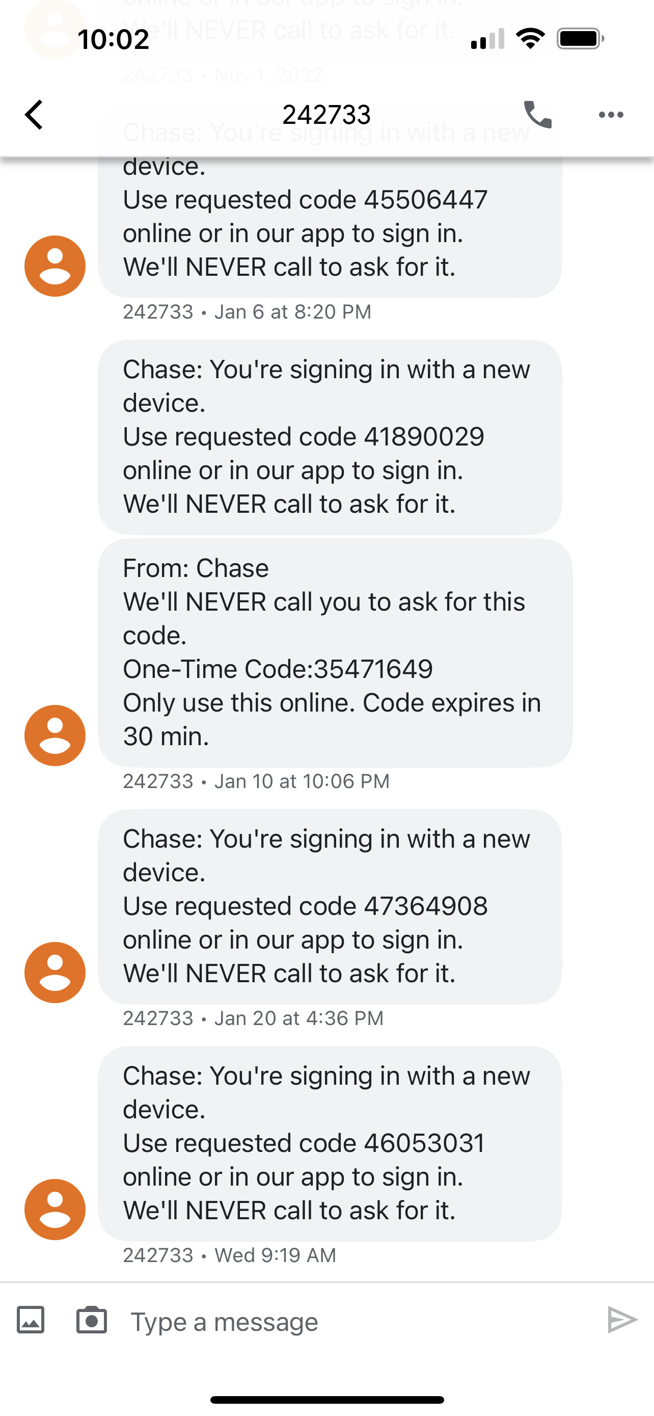 我一直都用voice接受chase的短信,用了好多年了,没出过问题