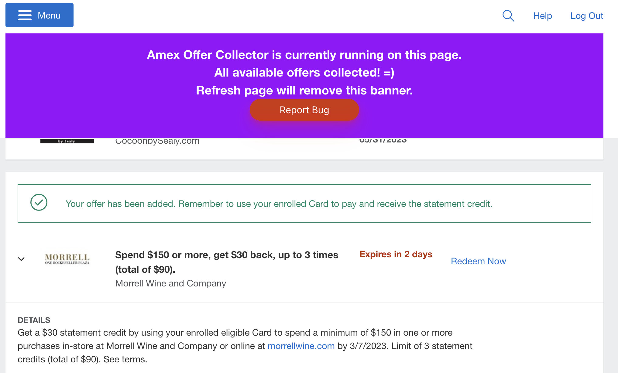 - 打开你的Amex Offer页面 (或者Chase/BoA Offer/Citi页面)