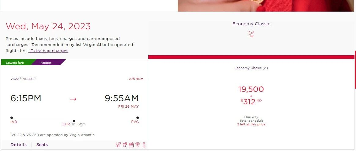 Virgin Atlantic将于5月开始复飞每天一班的LHR-PVG,六月几乎每天都有放里程票。