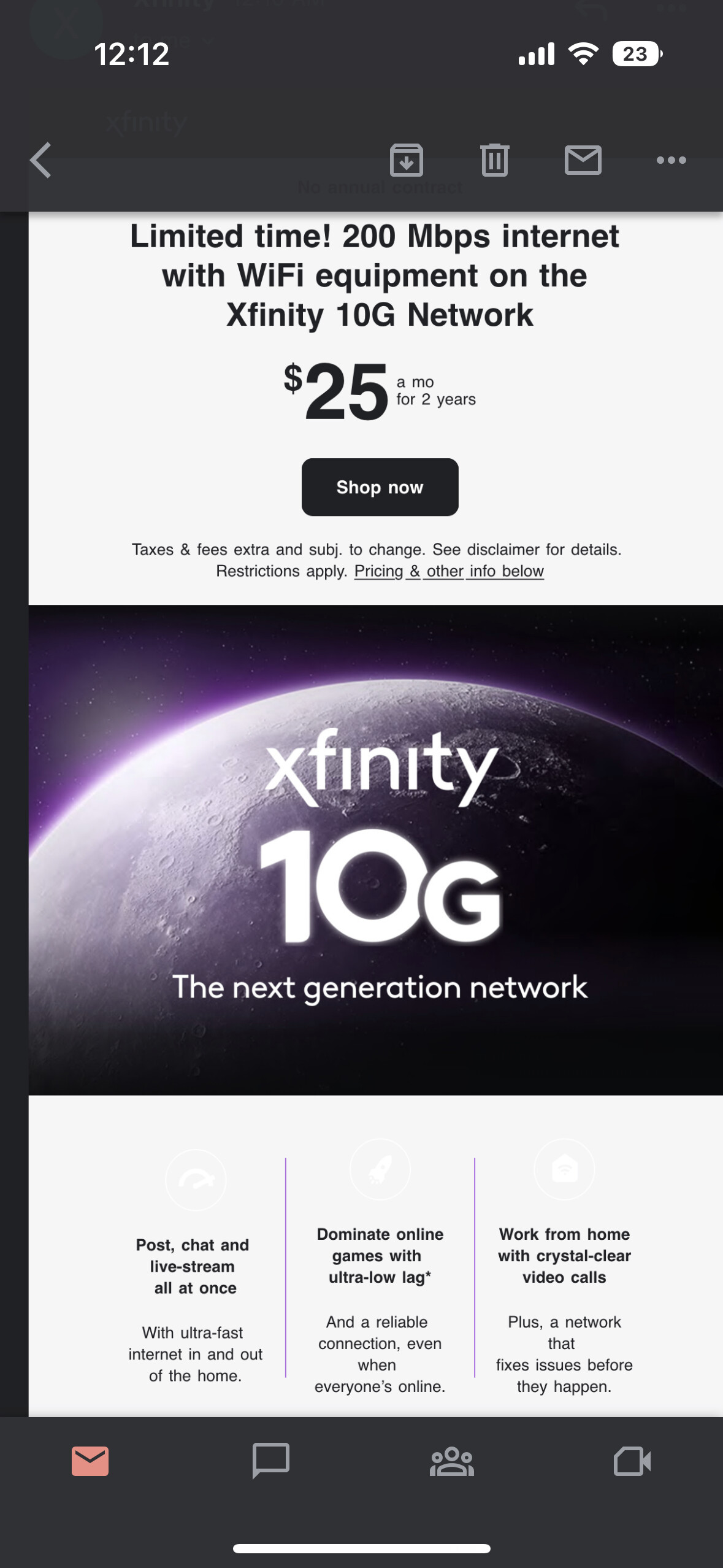 200 Mbps internet with WiFi equipment on the Xfinity 10G Network