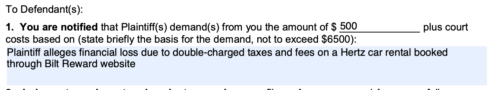 Iowa的法院还要求递交Itemized Statement, 大概就是你为啥要索赔这个数, 需要逐项写出