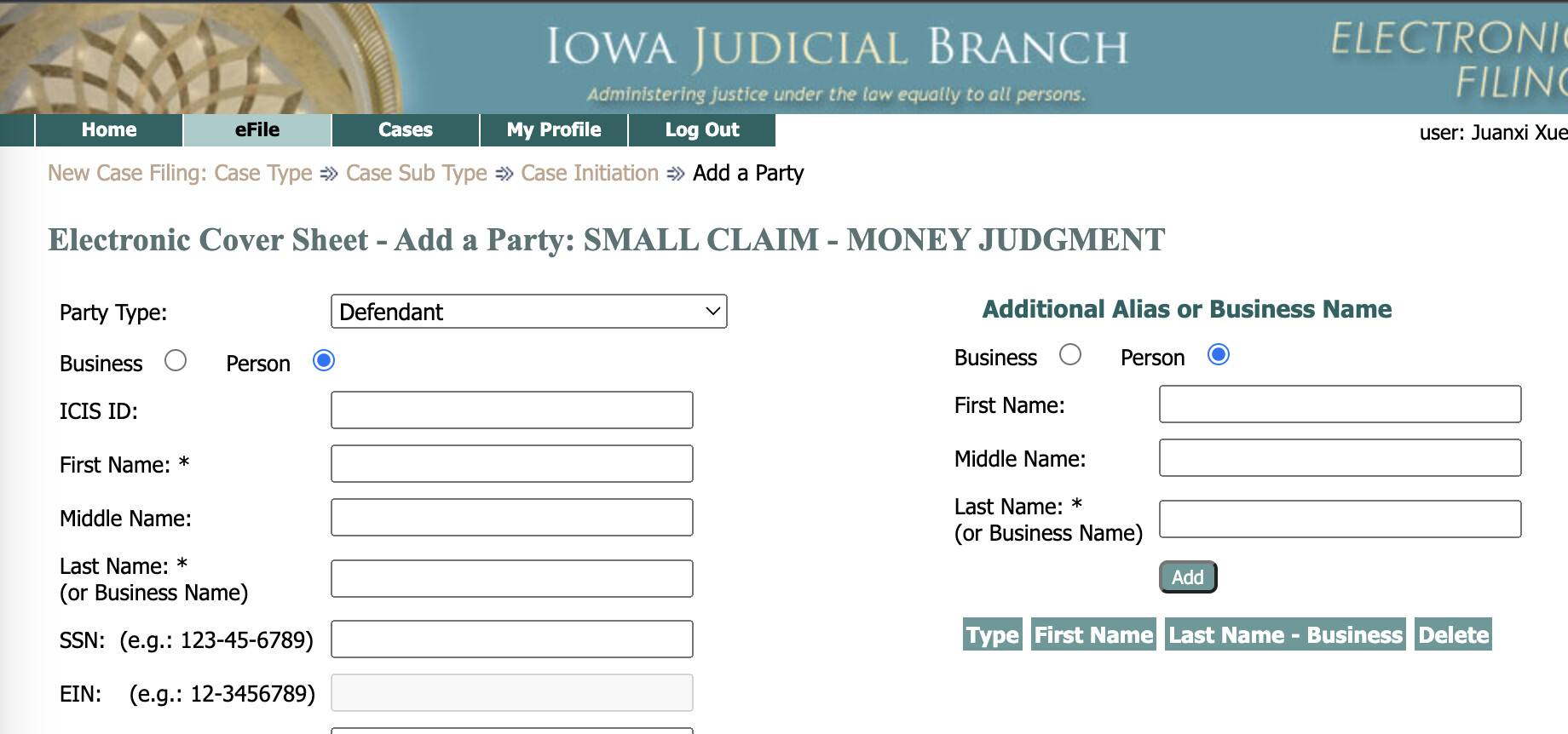 接着就是把自己的信息以及被告的信息填写清楚就好. 这里并不是所有信息都是必填的. 但是我第一次没有填写我自己的SSN电话和邮箱就被退了回来 -
