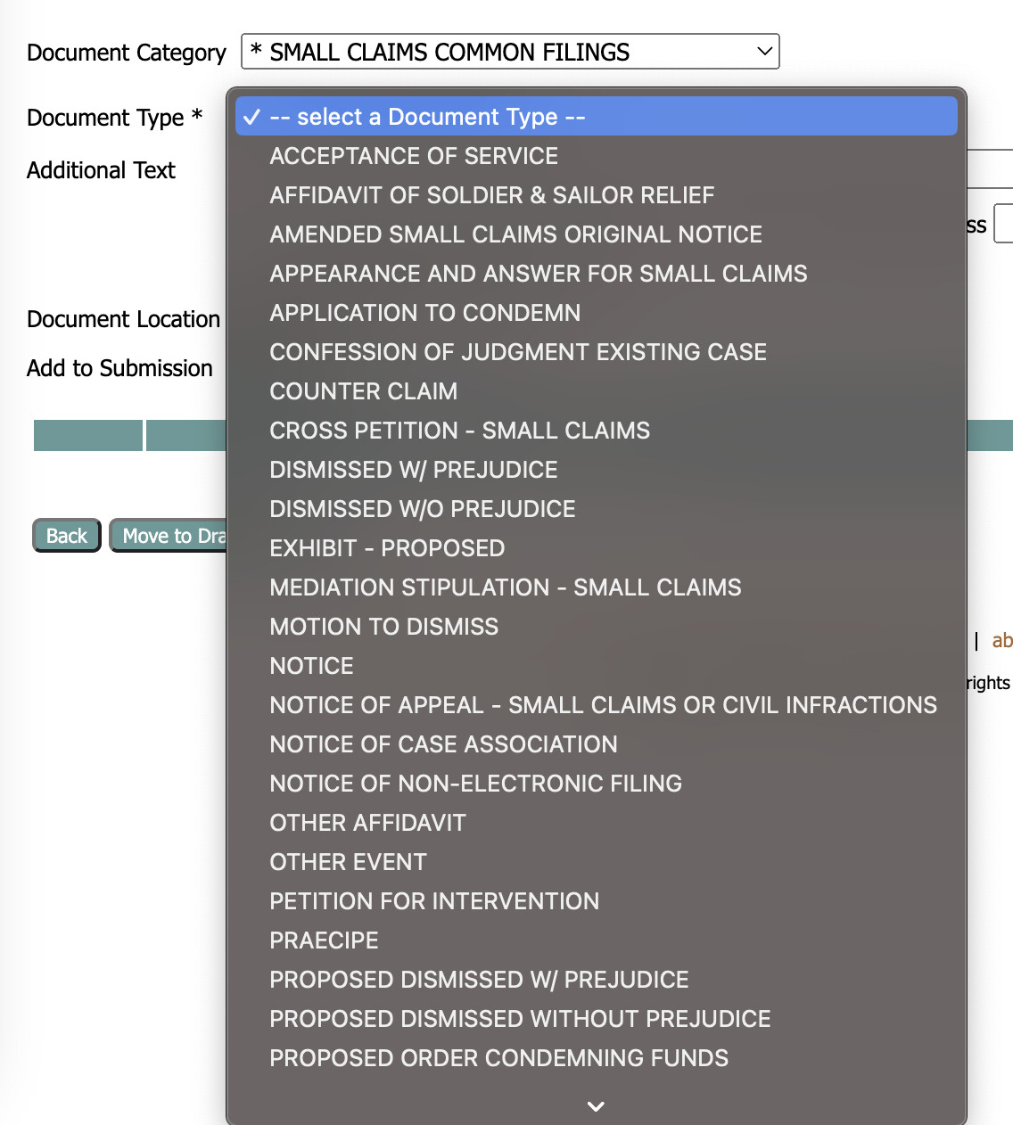 在网站上注册好账户后就可以开始填表了, 这里会再次要求填写Type, 就选Small Claim → Money Judgement 就好