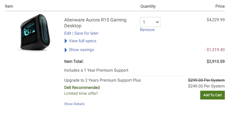 13900F+4090,折后价只要2910,而且dell可以split payment,叠加五个(经指正,dell最多只能split三张卡)dell的AmEx offer的话,又可以减360,再叠个10%左右的cashback,税后到手价可能还不到2400。