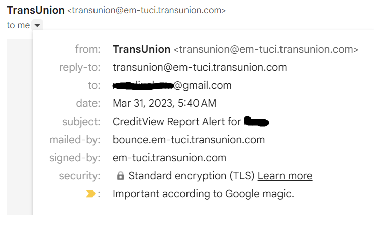 今天收到两条alert,一个是Transunion的说 You have a new credit alert. A New Tradeline Has Been Opened。我最近在Fidelity上买过bund,以为是这个。看邮件地址,和我之前收到邮件的地址是一样的就点开了,但是Transunion邮件里的链接跳转到US Bank,网址也是对的。就有点疑惑了,我最近也没在US Bank 开过新卡新户。 就去看了第二条邮件想看看怎么回事。