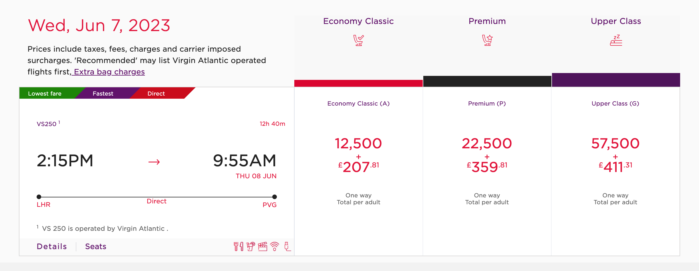 晚上闲来无事搜索vs的reward,看到了5/22 jkf-pvg 22500+314YQ的点数票符合自己一个箱子回国的条件,算下来其实是不错的选择。相比之下在农贸市场蹲ewr或者iad转hnd再买非联程的reward,直接买vs这趟要省事很多。于是下手发现不可以直接购买会报错,打电话变顺利出票。附上截图供大家参考,是一条不错经济的回国路线
