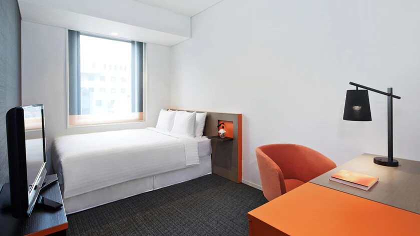 这周周一到周五,Courtyard Tokyo Station 19平米 queen bed要1晚43000JPY,房间是这个样子: