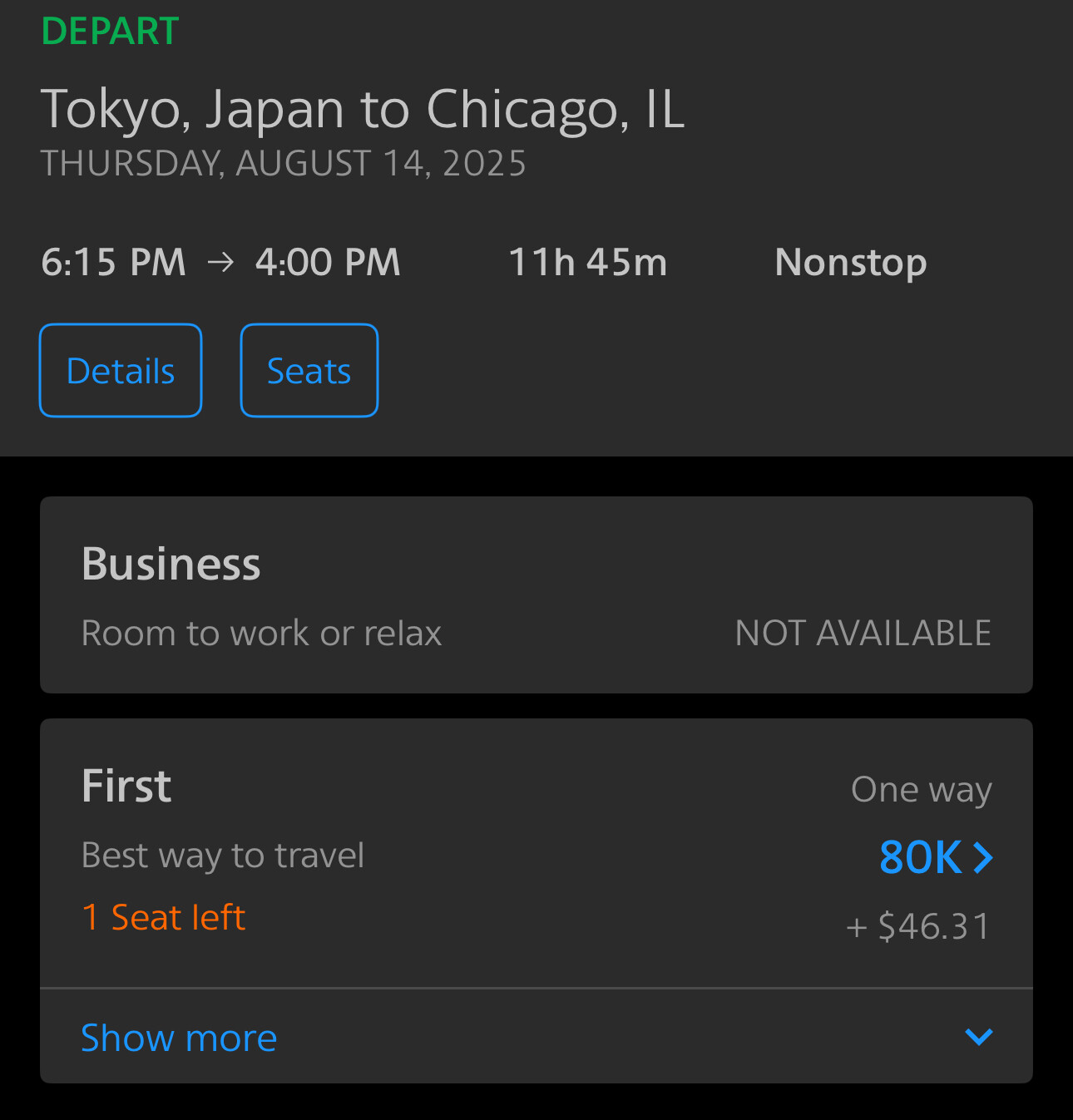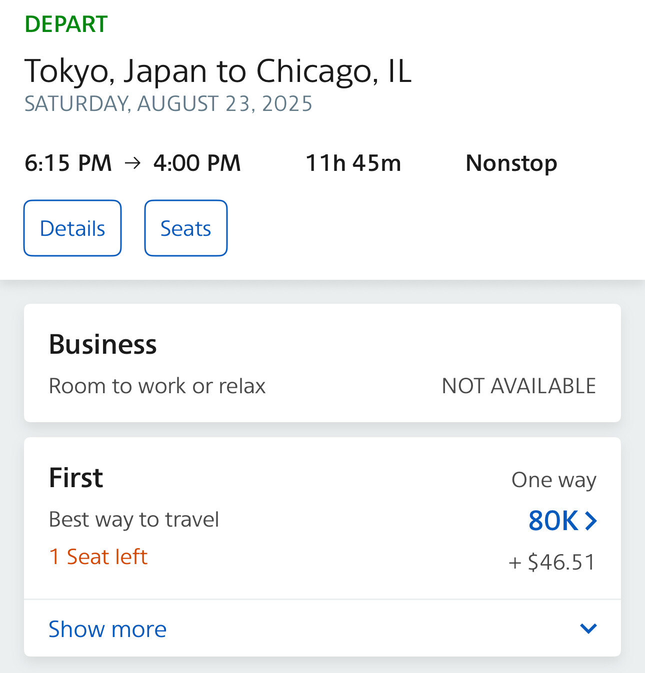 退了一张06/04/2026 JFK-HND 的ana J舱,退完看了一下没有立刻回票池…需要可以蹲一下