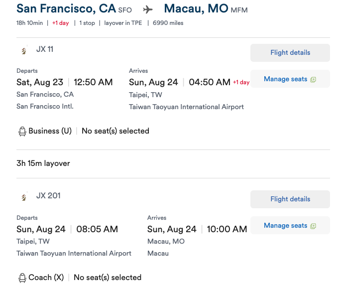 另外许愿一个一张8月15到8月19之间的美西SFO/SEA/LAX/ONT飞TPE的JX J票