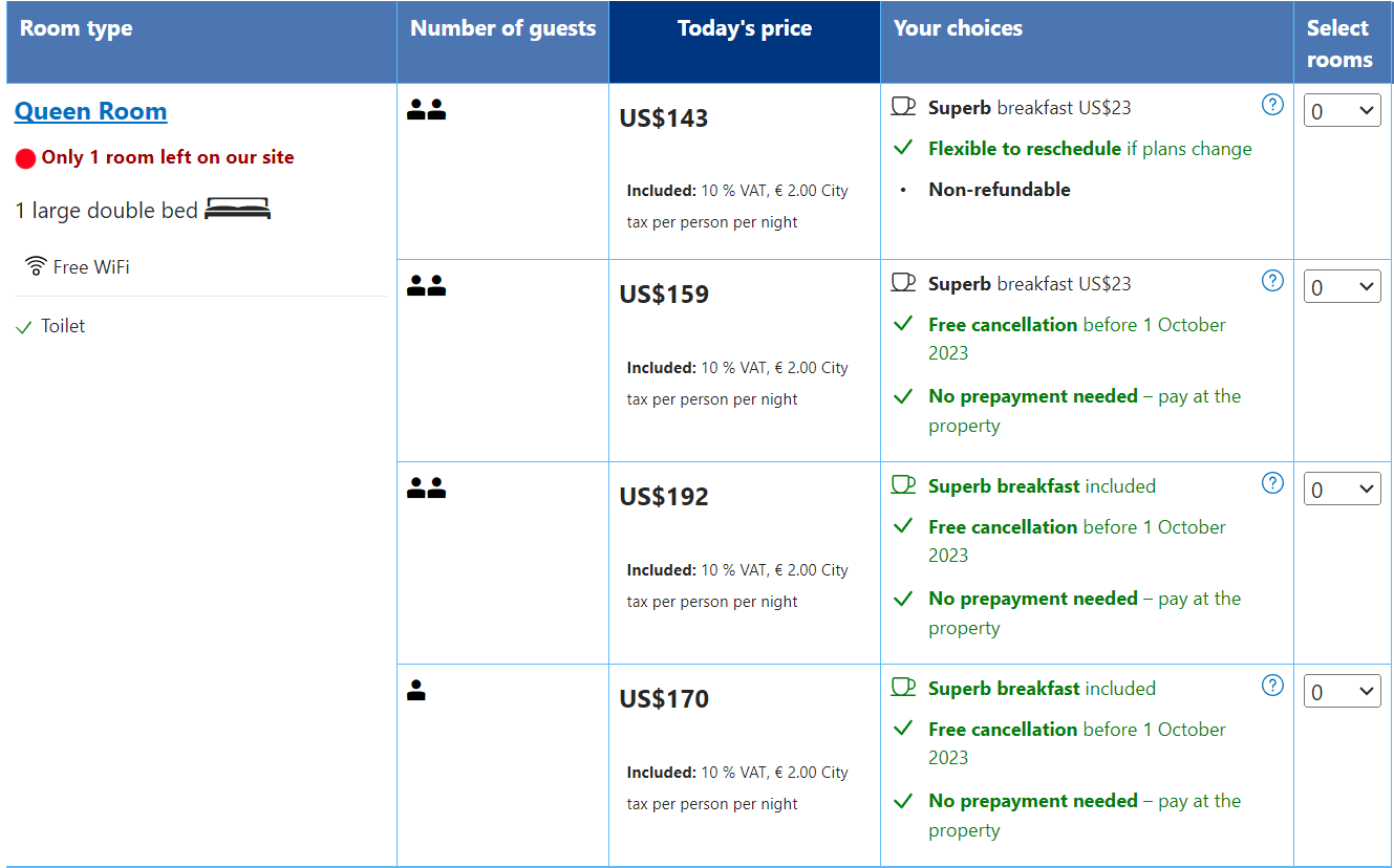 我去Booking看了Lindner的现金价,他们酒店早餐是$23-25每人,两人间的话早餐费用要差不多$50。所以如果你比较在乎免费早餐福利的话当然选择Choice,否则如果你想住有历史感的酒店的话就选后者。