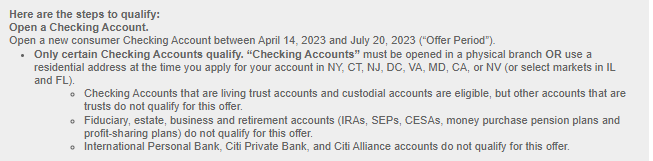 根据DoC上面的dp,citi电话客服确认对checking account type没有要求
