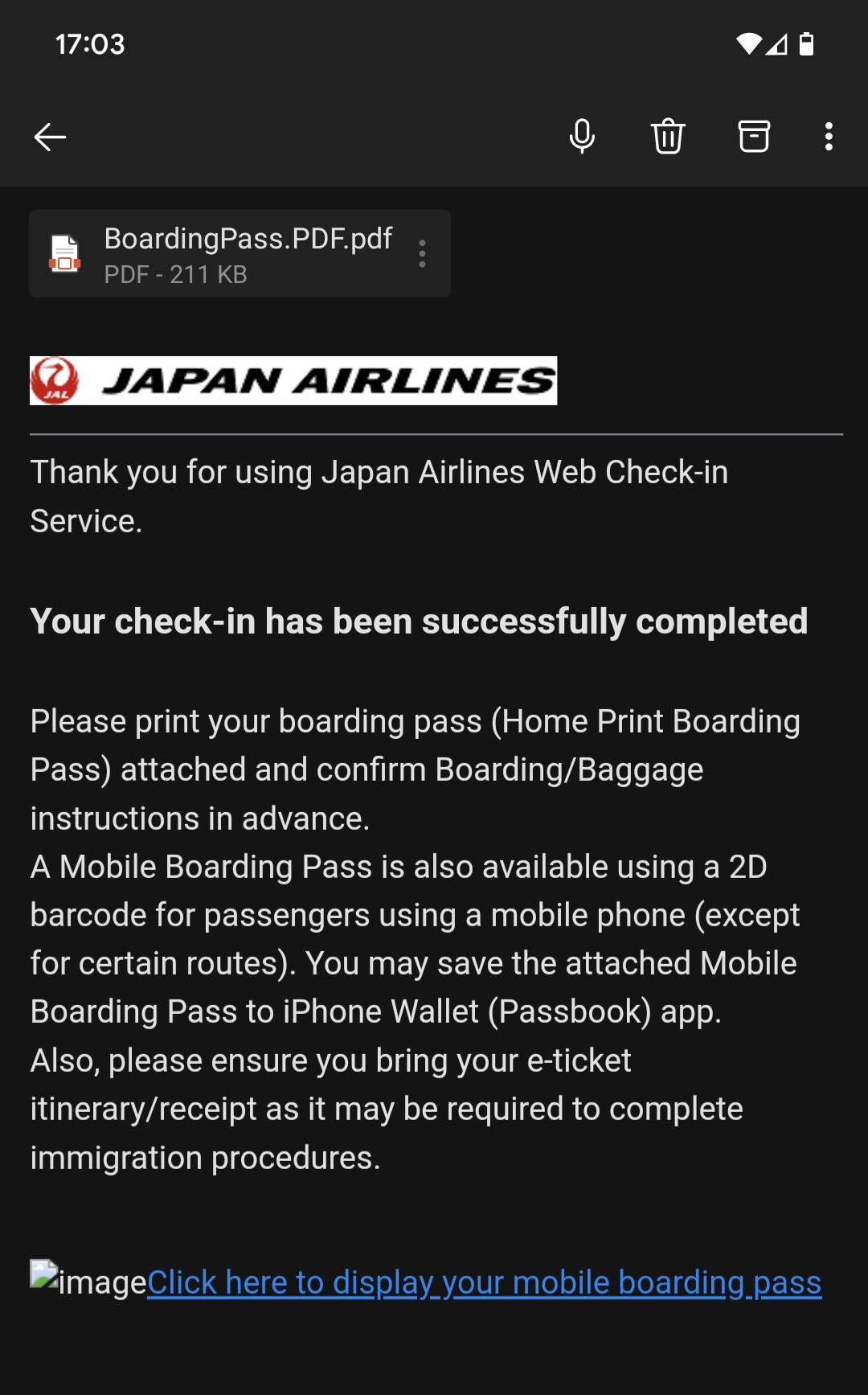 印象里JL的登机牌我是在手机上拿到过的。估计要羡慕死 @reventon04 老师了。![]()