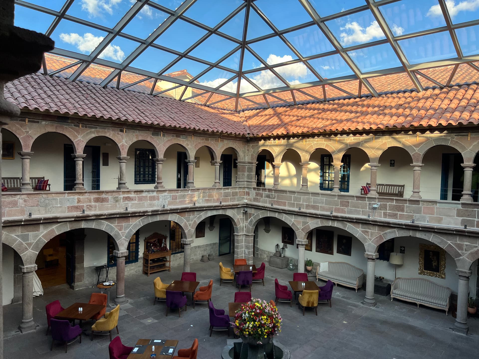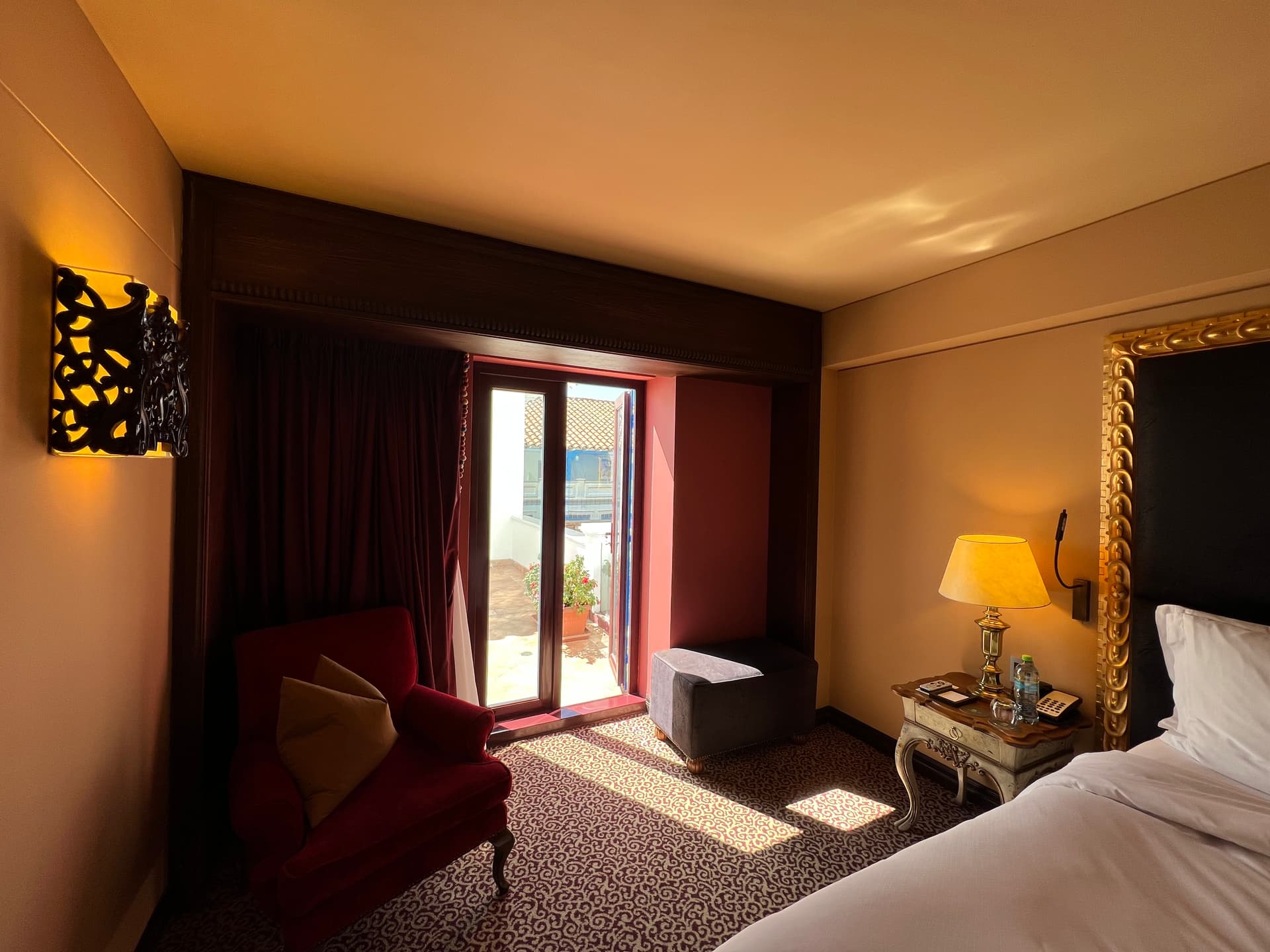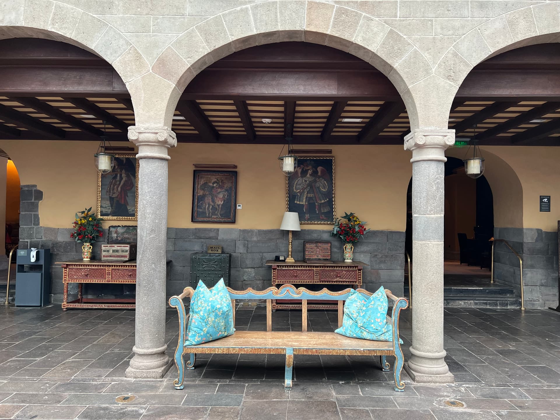 下午坐火车+bus回到库斯科时已是晚上8:40,迅速赶去Novotel拿上了行李以后去距离不远的Palacio Del Inka豪华精选酒店入住,这家豪华精选算是35K房券可使用酒店里性价比和质量都超高的一家,昨天就已经可以在万豪app里看到房间从乞丐房升级到了一卧室套房,前台办理入住的工作人员非常热情,destination fee的福利包括两杯Pisco、25刀SPA抵用券(看了一下SPA菜单好像最便宜的全身磨砂只要50刀,明天有时间去让SPA大妈把我搓搓干净