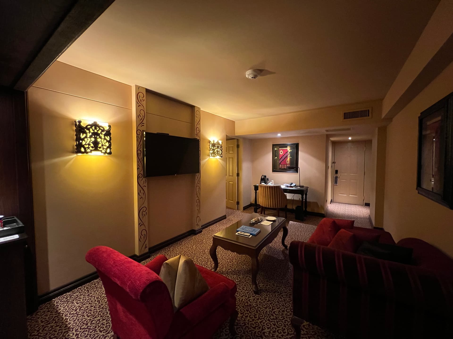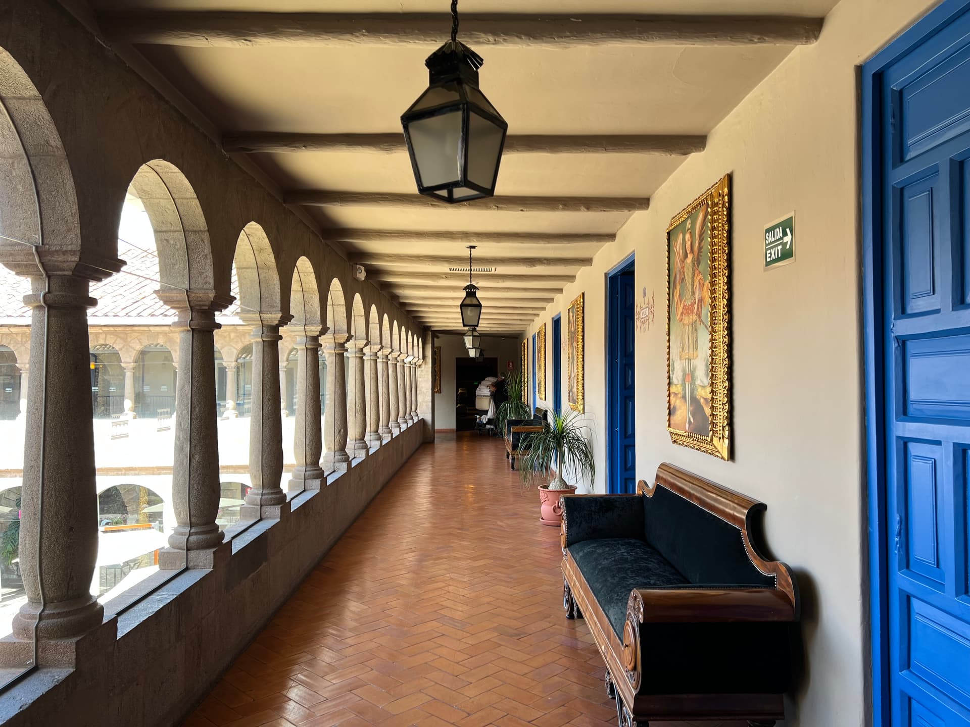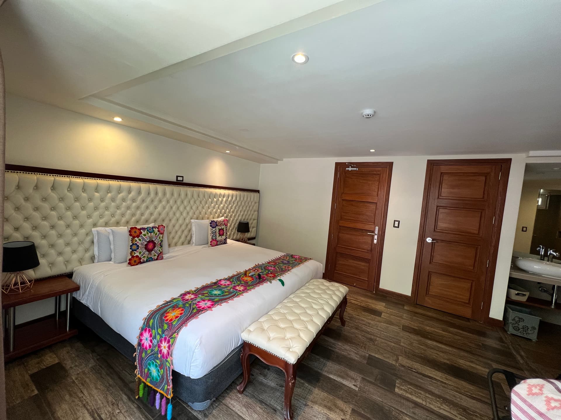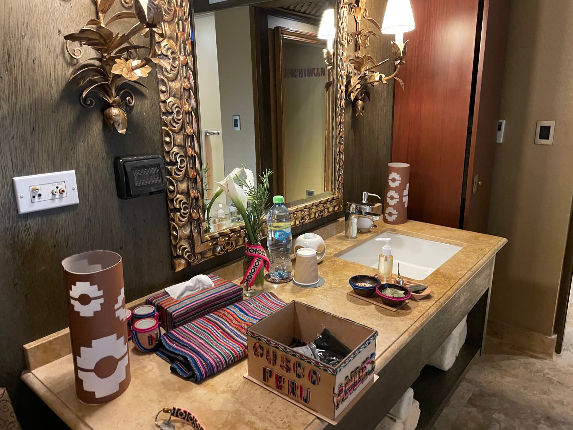 下午坐火车+bus回到库斯科时已是晚上8:40,迅速赶去Novotel拿上了行李以后去距离不远的Palacio Del Inka豪华精选酒店入住,这家豪华精选算是35K房券可使用酒店里性价比和质量都超高的一家,昨天就已经可以在万豪app里看到房间从乞丐房升级到了一卧室套房,前台办理入住的工作人员非常热情,destination fee的福利包括两杯Pisco、25刀SPA抵用券(看了一下SPA菜单好像最便宜的全身磨砂只要50刀,明天有时间去让SPA大妈把我搓搓干净