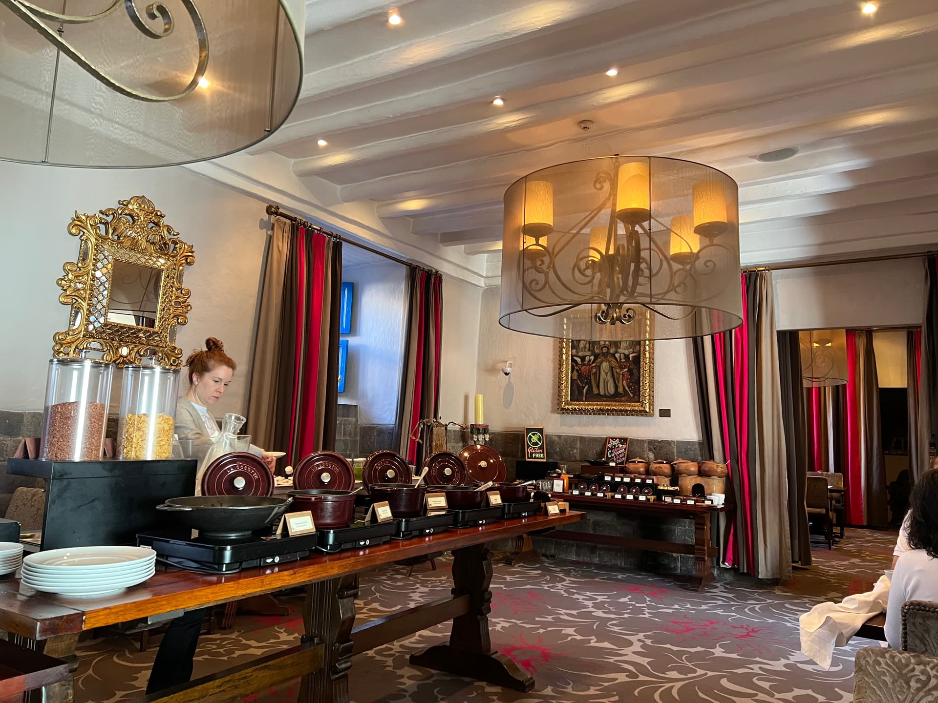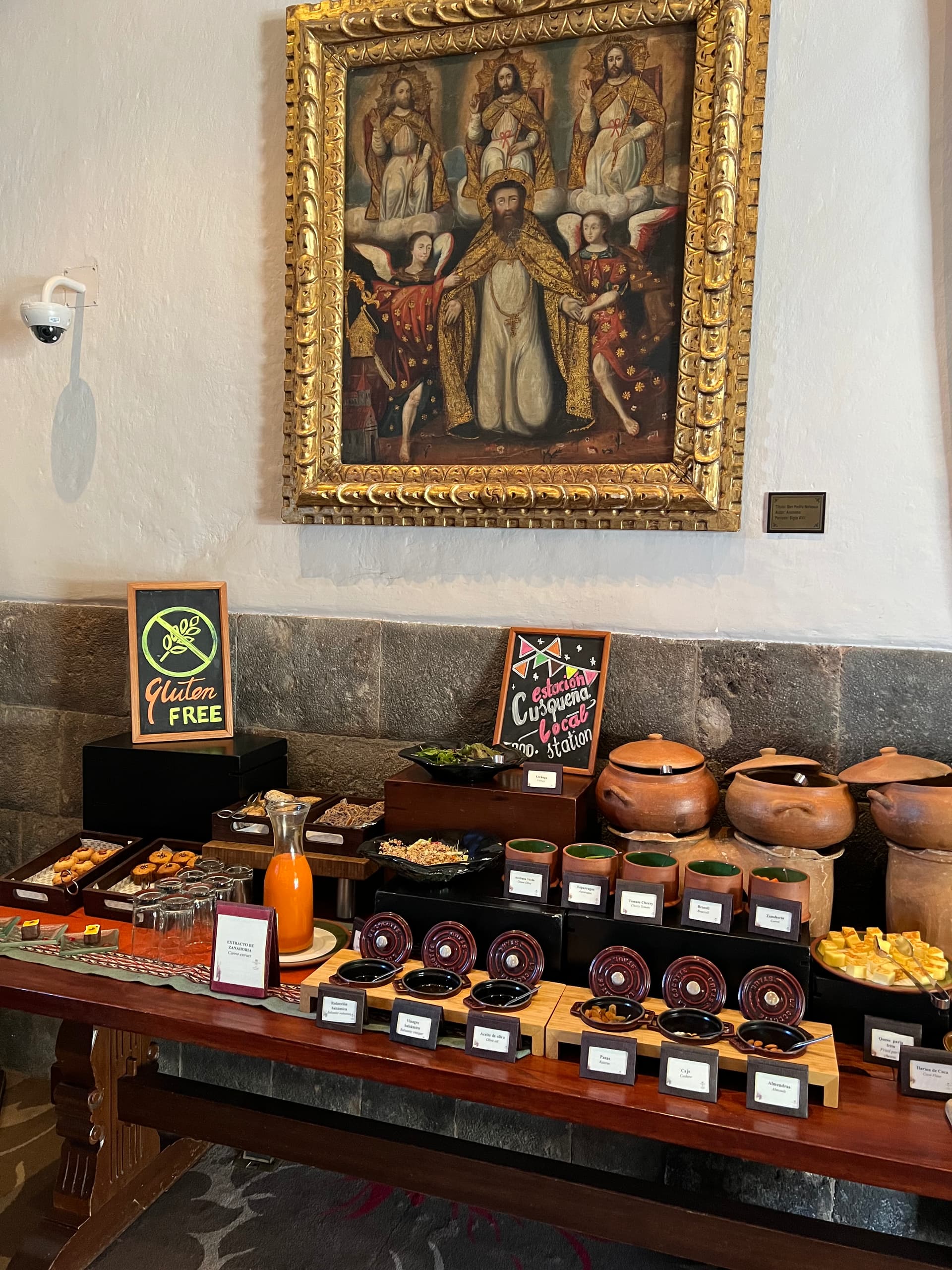花了18 soles从机场坐Uber到酒店,今天入住的是Novotel Cusco,虽然是早上8点就check in了,但是前台很爽快地无额外费用直接给了房间,放下行李睡了两小时就出门溜达了,Novotel的性价比极高,100不到的房间价格,酒店也是传统印加庭院建筑,如果不追求房间要有印加特色和泳池的话是个很棒的选择,早餐的话5点就开始了,对一大早要赶火车去热水镇的游客来说非常友好。