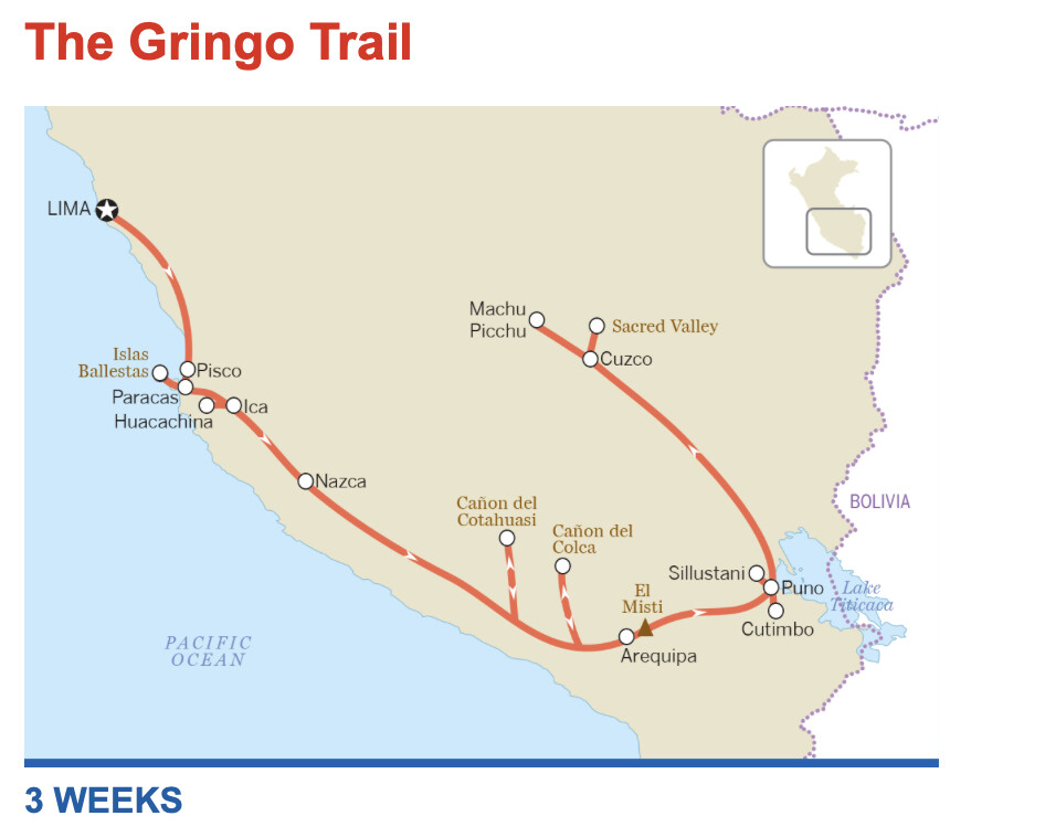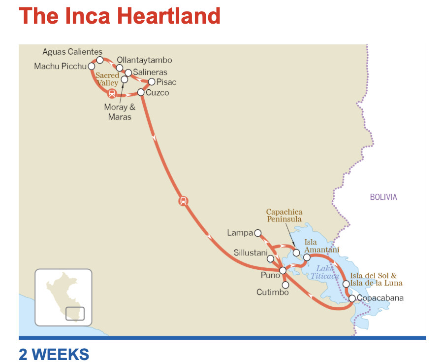 全程运行时长约4小时,途中会在欧雁台、4-days Inca trail起点和2-days Inca trail起点分别停靠。