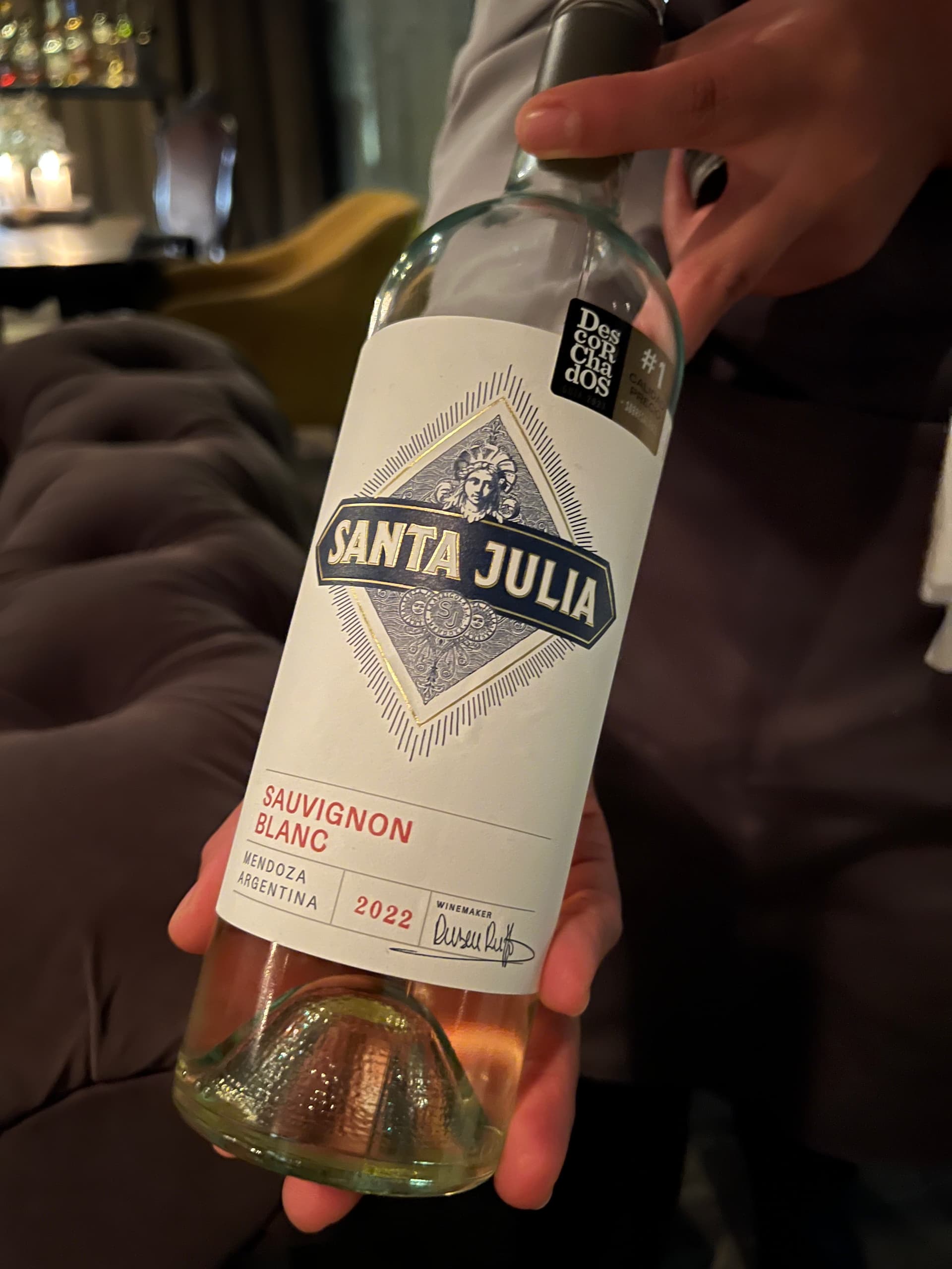 酒的话只知道是一杯white wine,产地阿根廷(盲猜门多萨?)