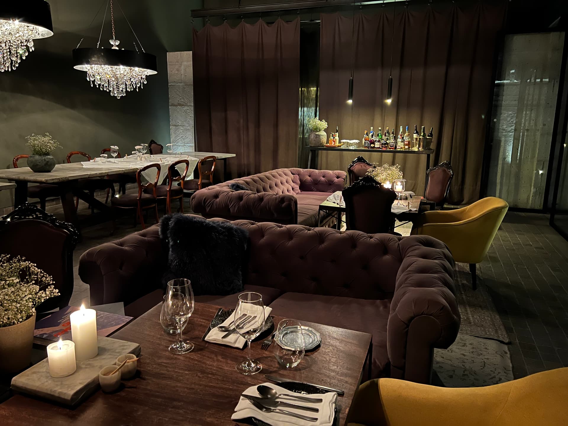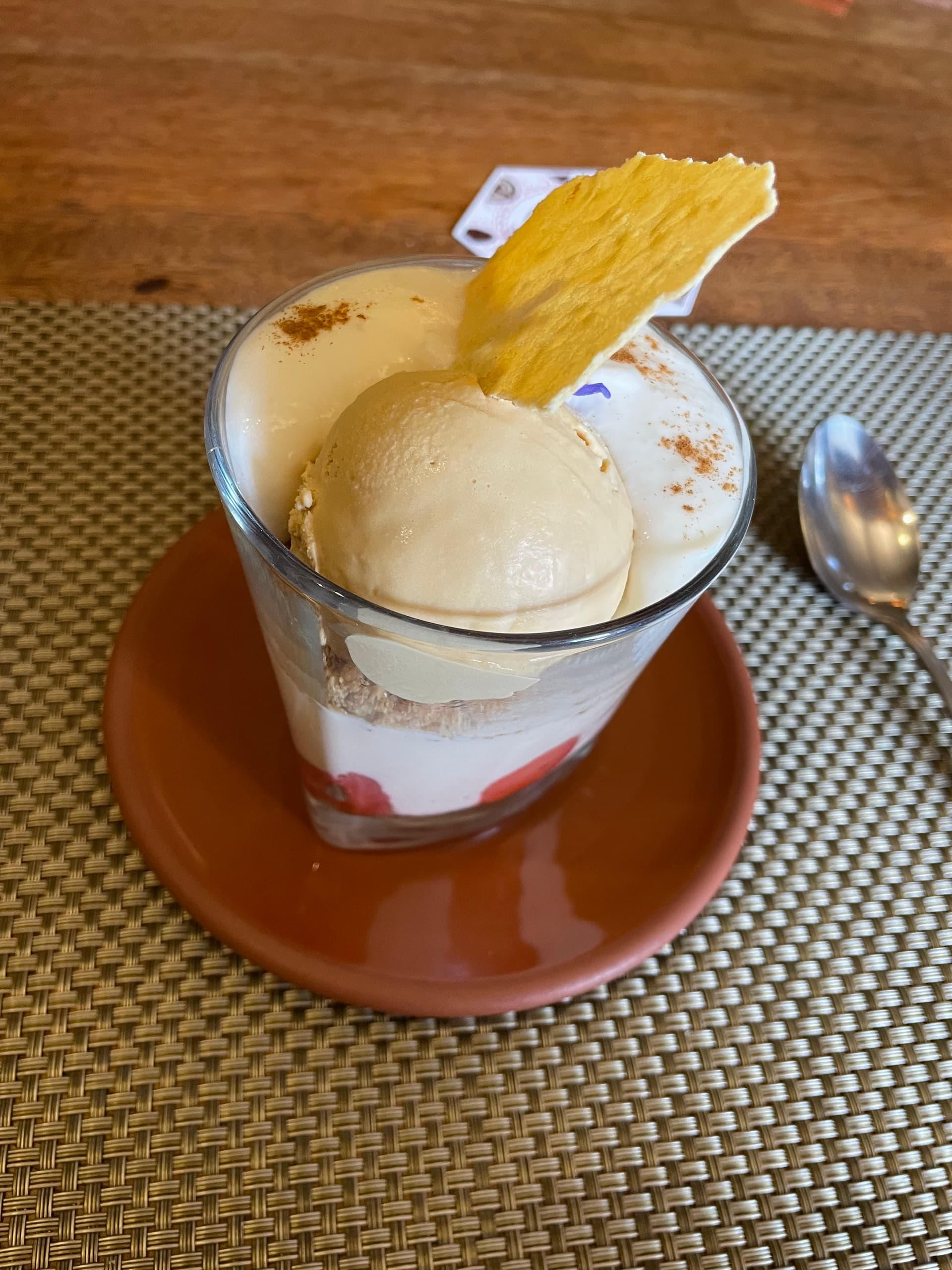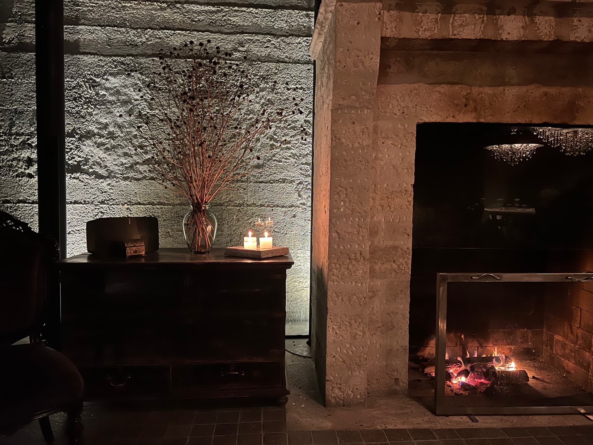 整个晚餐吃了一个半小时,吃完出来又在庭院就餐区域拍了几张照(外面太冷了所以躲在里面火炉边上干饭