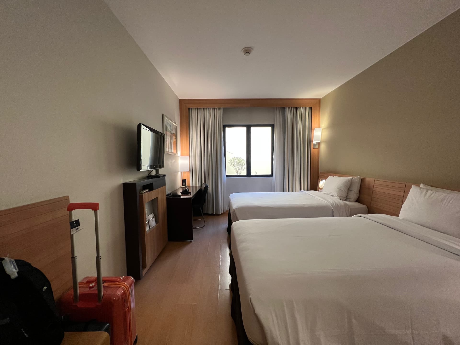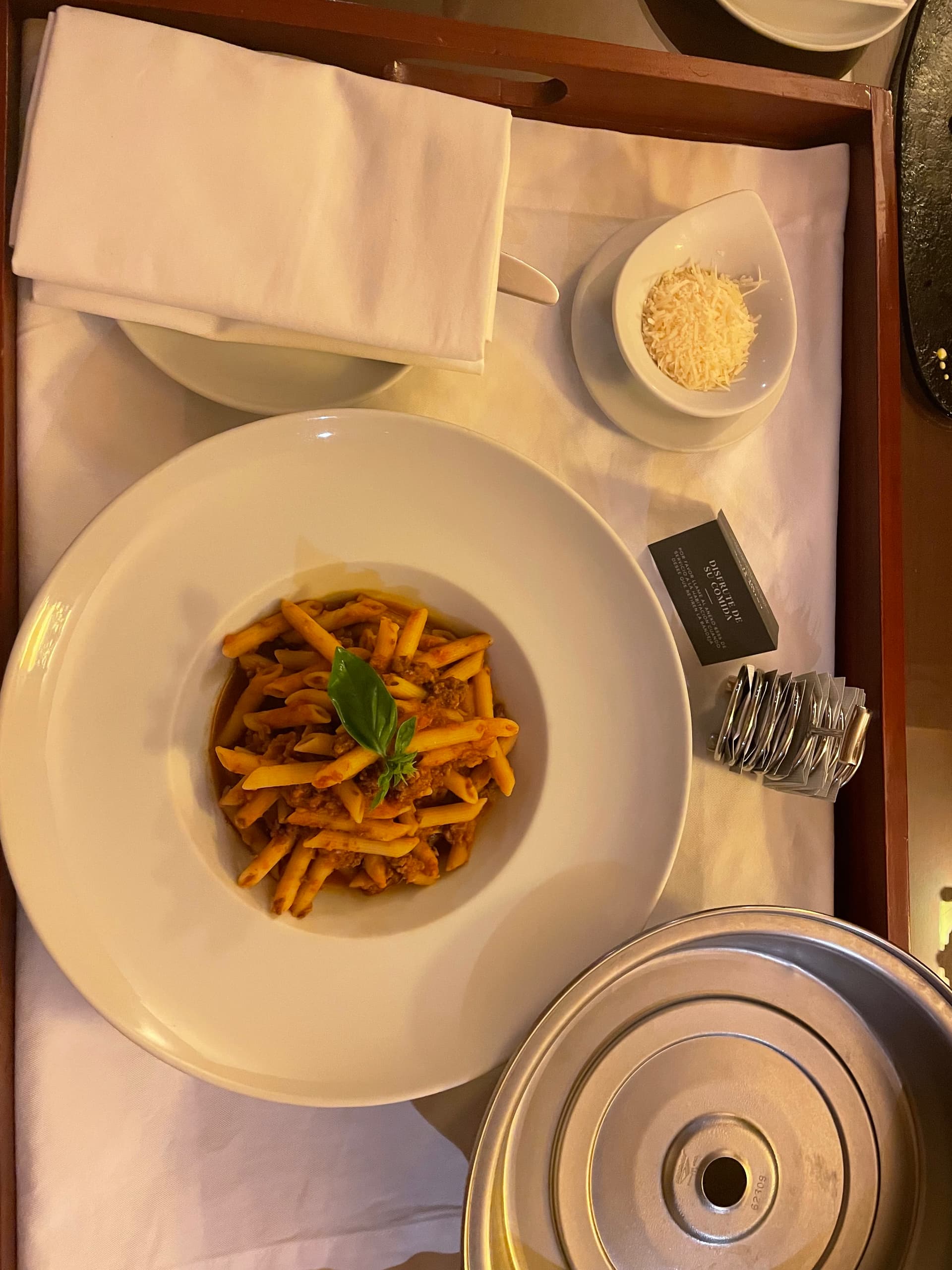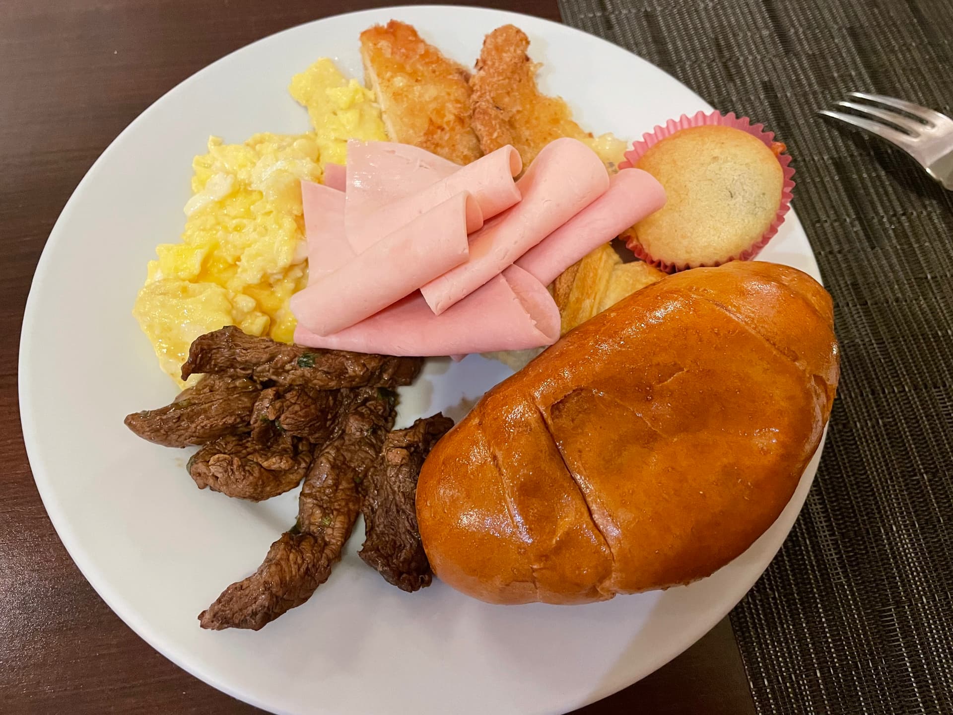 )酒店只有一个餐厅解决早中晚餐,从早上6点营业到晚上10点,晚到的我从早上六点半开始就没正经吃过食物,只能含泪选择叫了客房用餐填个肚子