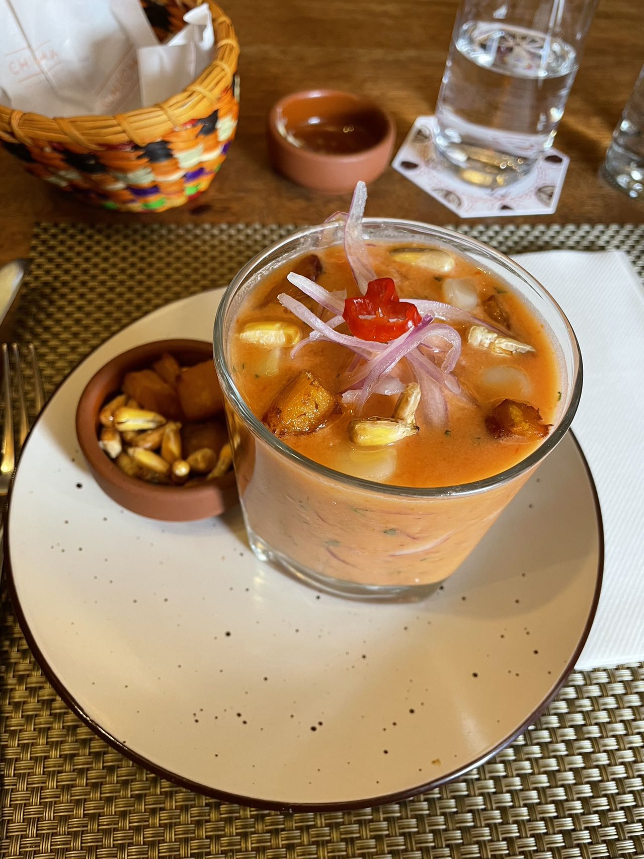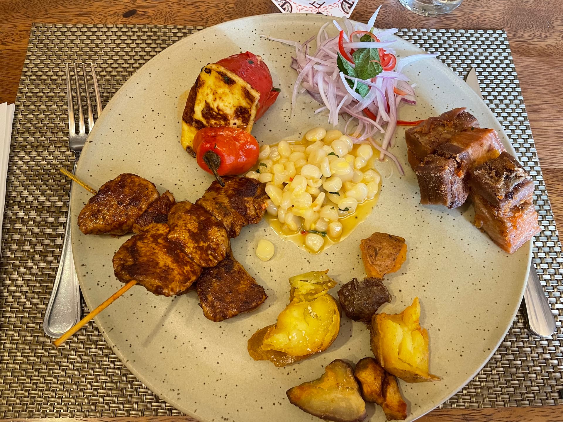 午餐在一家名为Chicha的餐厅解决,羊驼肉稍稍踩了个雷,别的菜都很完美,秘鲁人做菜偏酸,正好很合我口味,但是羊驼是真的不好吃啊,肉不够嫩不够香,所以只能被观赏rua毛没有全球大规模养殖是有原因的