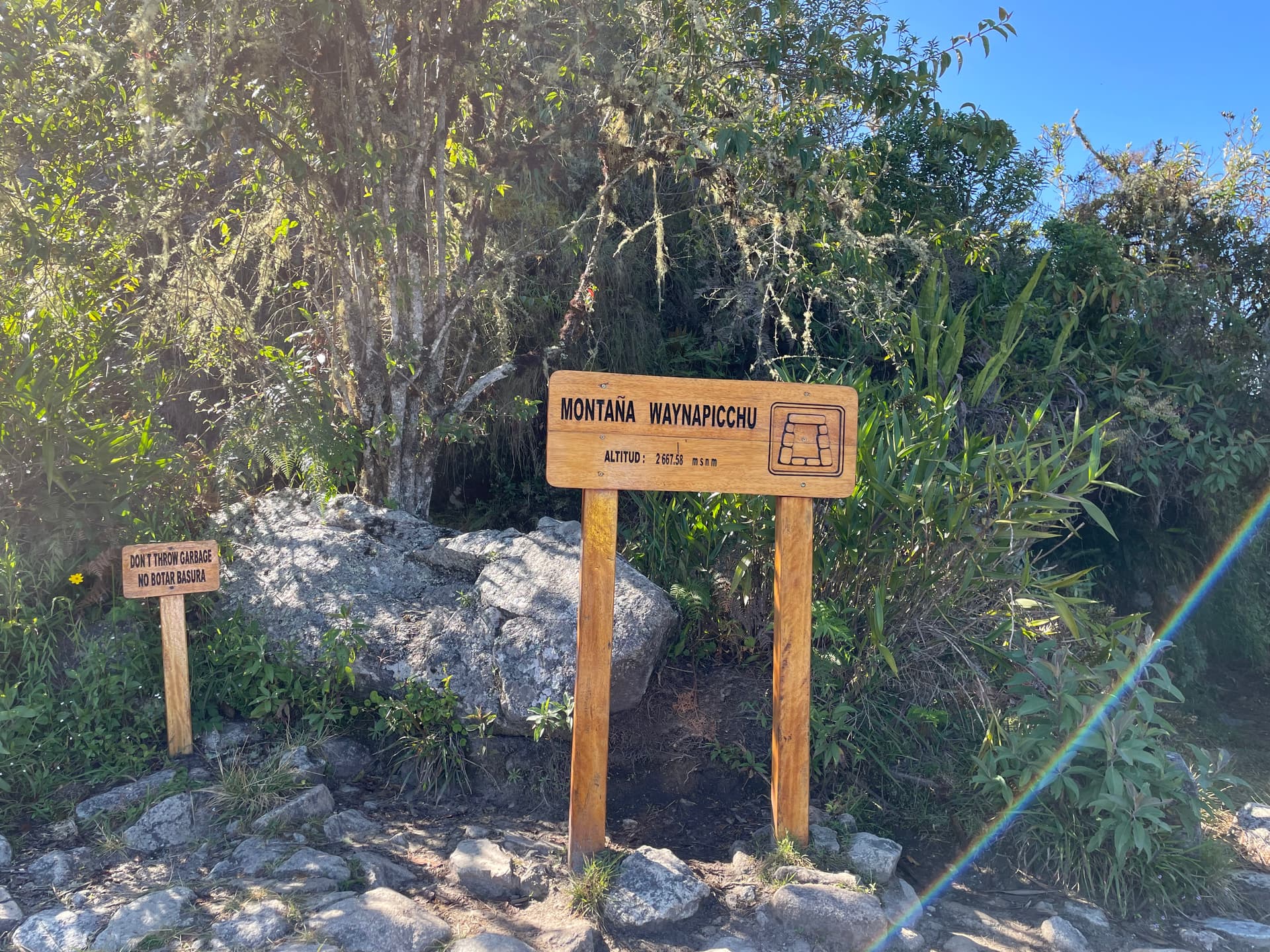 8点准时到达华纳比丘check point登记,看到身边跃跃欲试的欧美游客三五成群人手一个双肩包大瓶饮用水遮阳帽速干衣冲锋衣还有不少携带登山杖的,后来全程走完发现也确实就我一个人跟傻狗一样只挎了一个mini胸包装了护照门票手机创可贴酒精棉,没有带水没有墨镜帽子,着装是上身普通卫衣内搭毛衣(因为早上真的有点冷