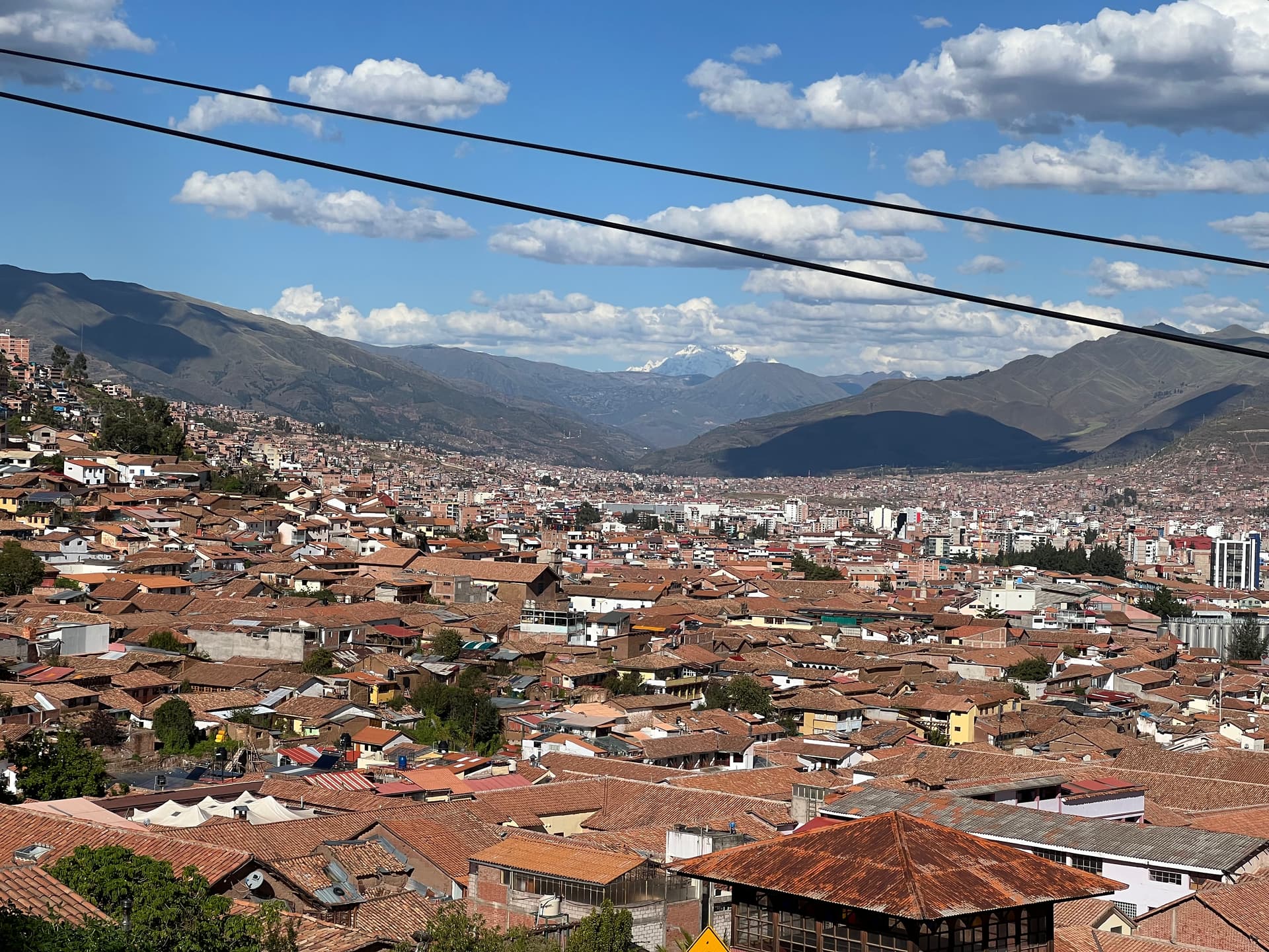 下降进场的时候可以看到整个库斯科城和远处的雪山