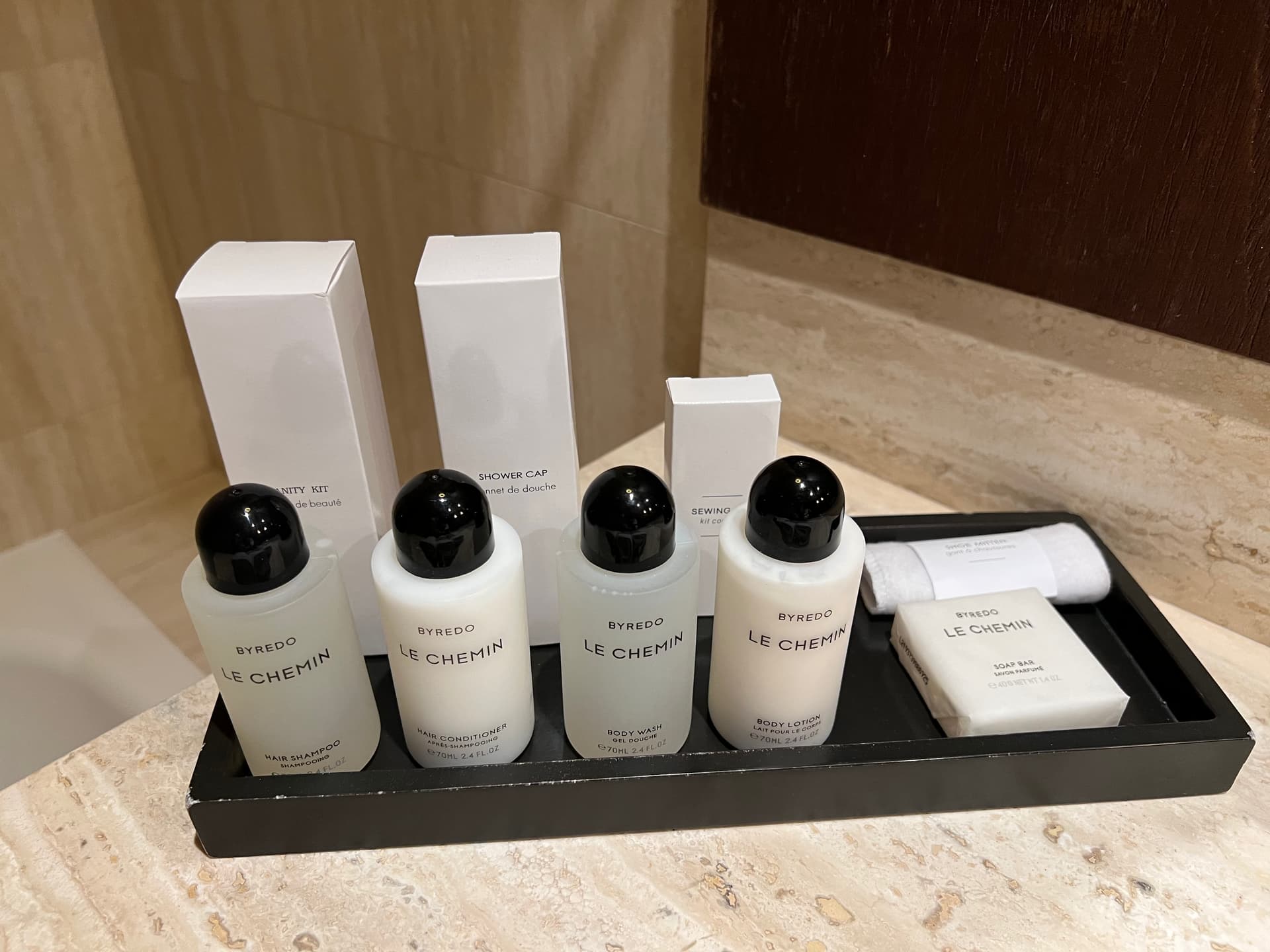 房间包含1.5个浴室,整体风格非常复古有历史气息,备品给的是70毫升装的Byredo(都带走都带走明天再多要两套