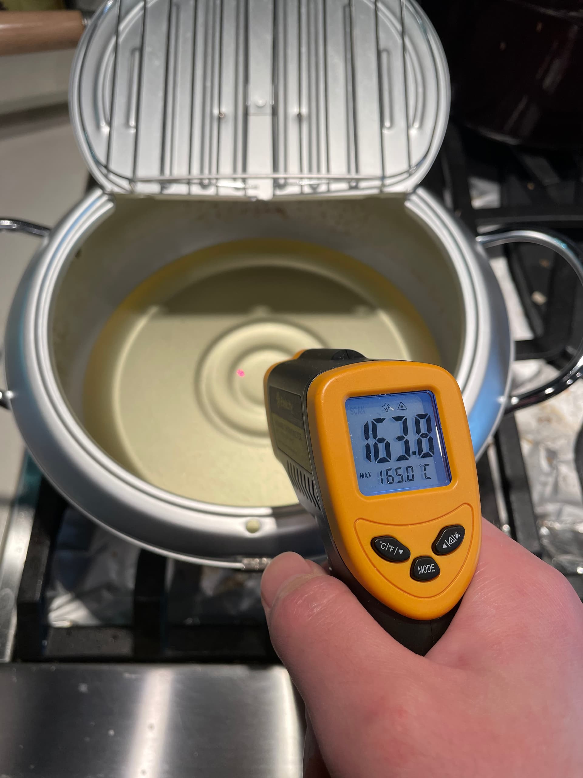 - 炸大概三四分钟后翻面,具体这个时间取决于火力大小。刚炸完的第一面如下图