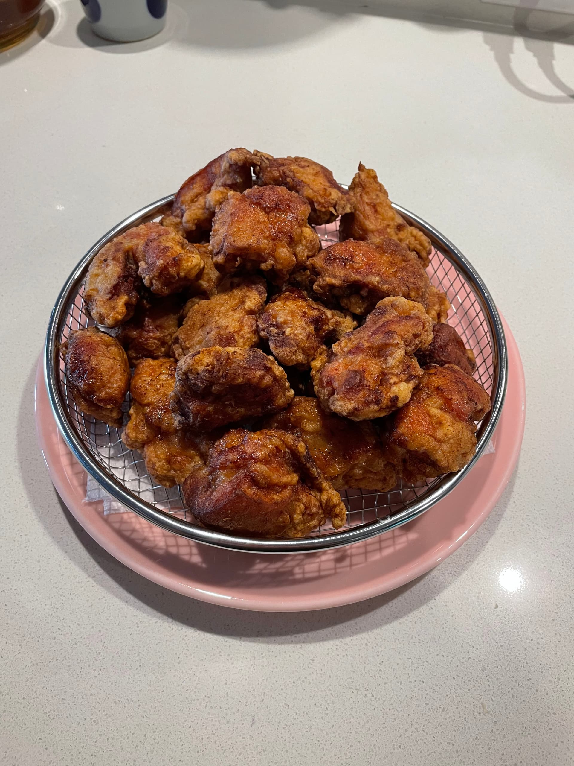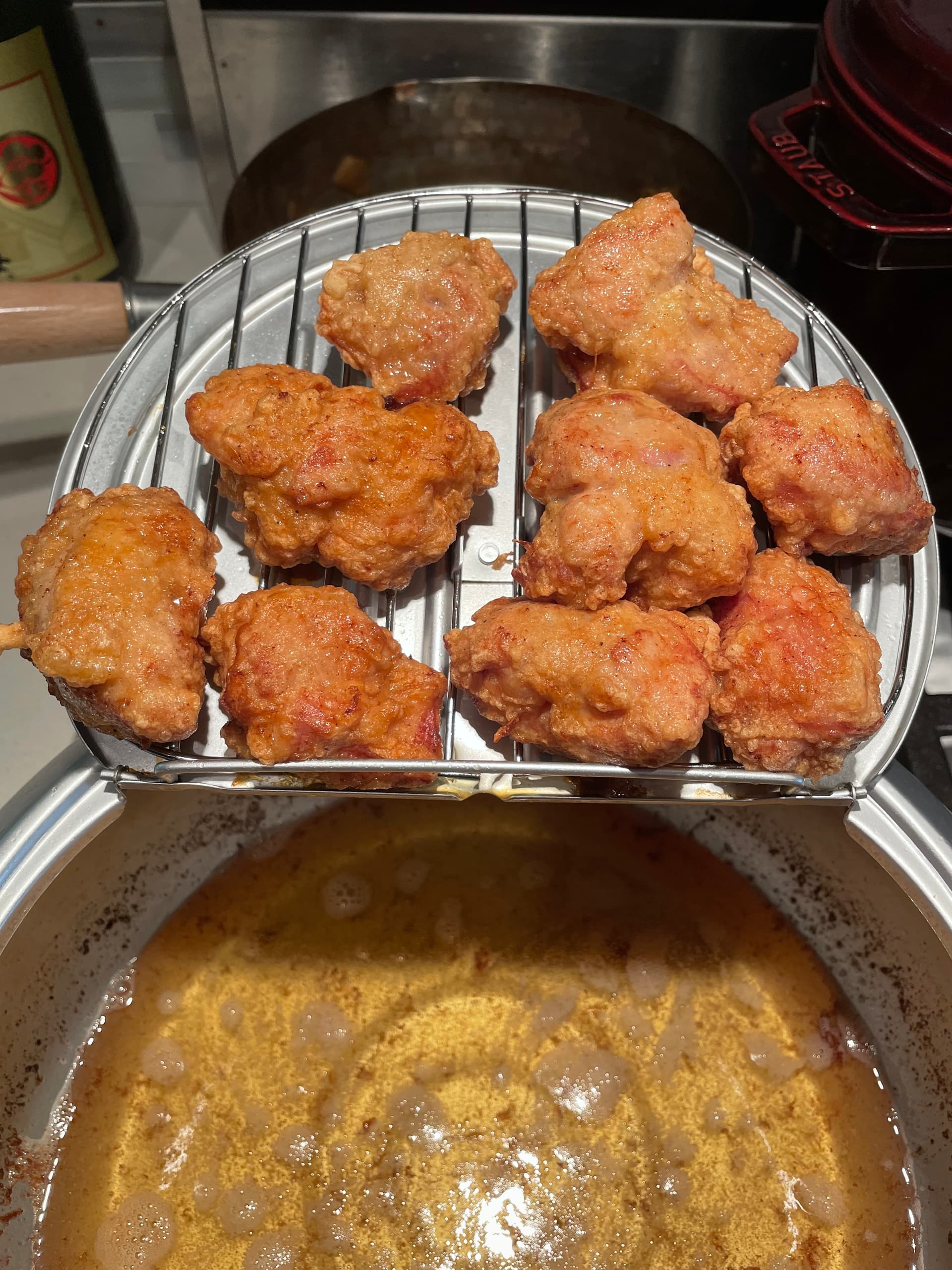 - 等待10分钟左右,这个等待时间里可以重复步骤5-6炸其他鸡块的第一遍