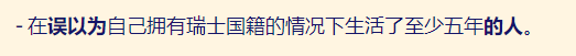 -在误以为自己拥有瑞士国籍的情况下生活了至少五年的人。