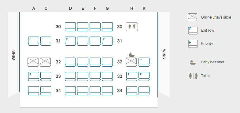 马上就要回国了,准备选座位,求各位帮忙看看哪一个位置更好,本人最想选的32ac都有人选了,32k不考虑因为h有人选了还带孩子,请问其他哪些位置更好呢?希望方便伸腿,更喜欢靠走廊的位置,方便去厕所。