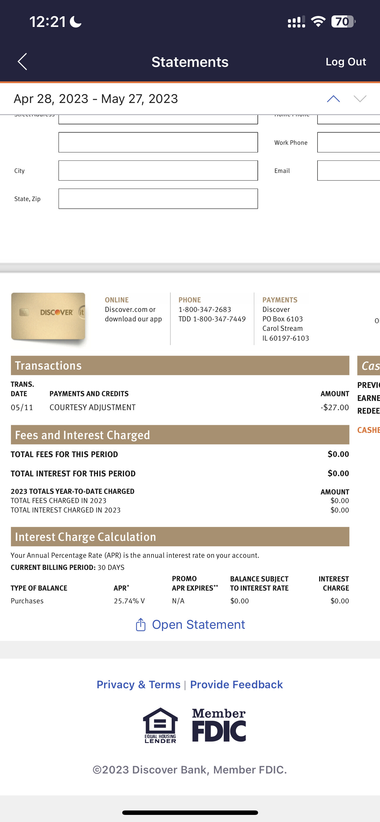 2021年的时候due to inactivity被Discover关了账户,今天突然收到一封statement的邮件,点进app里一看发现有一笔$27的courtesy adjustment不知道是哪来的,联系客服说查不出来,问我要不要寄一个check给我,但是我人已经不在美国了,有什么办法能直接把这$27转出来吗?或者说可以check寄到海外?(目前人在澳洲)