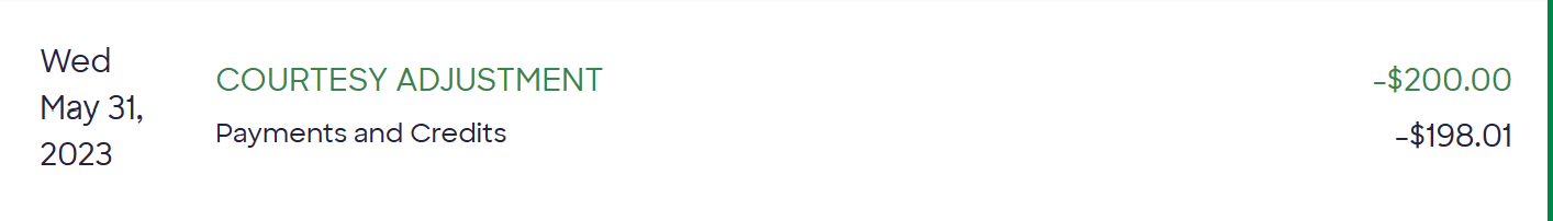 我也莫名其妙收到了200的courtesy adjustment ![]()